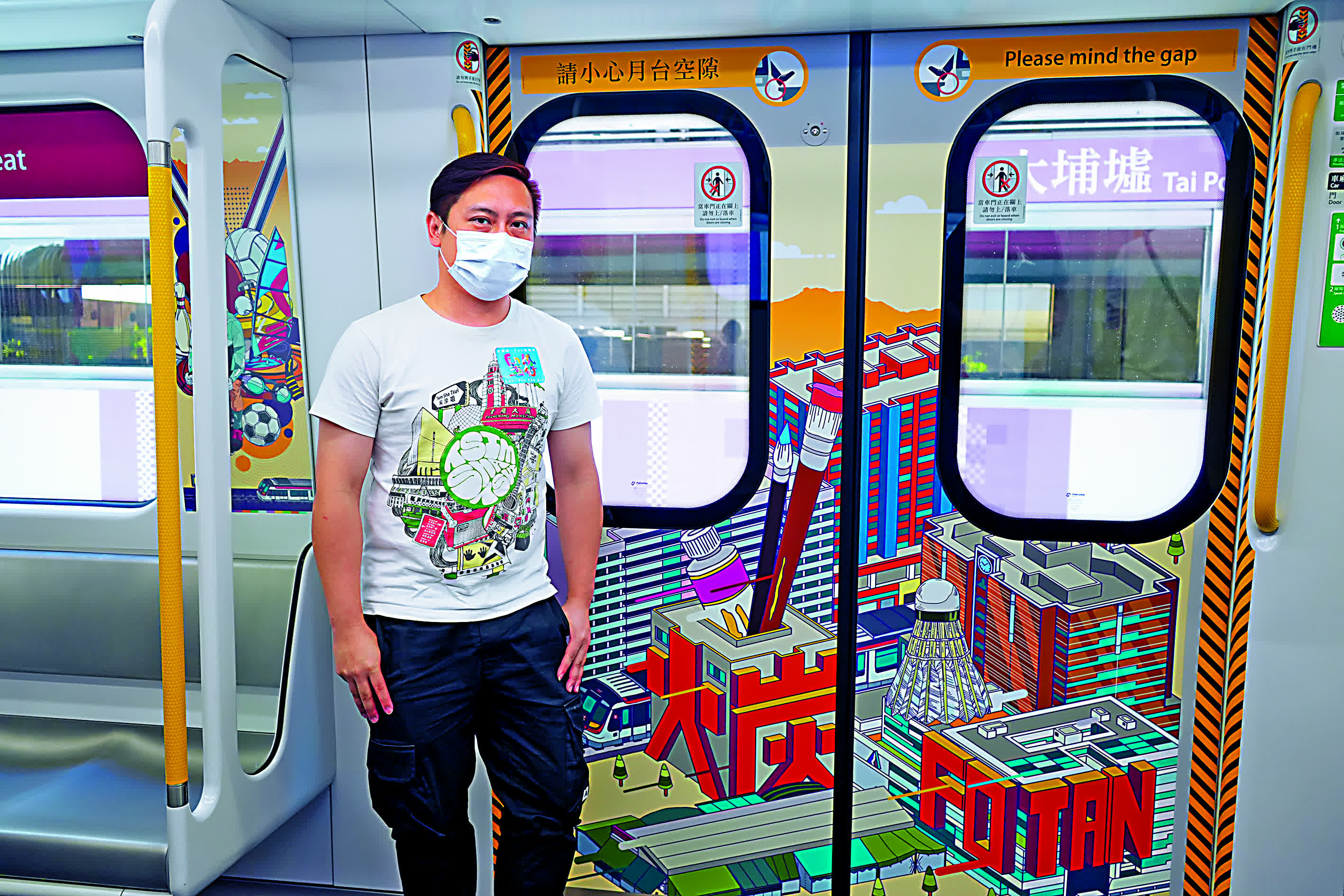 黃鼎豐告訴大公報記者:「因為這次創作是圍繞東鐵綫的,所以車廂使用了東鐵綫的顏色,上面有類似筆畫的圖案,每個站的代表顏色分布在不同的車廂和字體上。」他談到自己是次創作的概念,是將東鐵綫的各個站的站名,拆成筆畫,然後重新組合到一起,以此呈現更多的層次和感受。「我在創作的時候,會思考如何呈現遠看和近看車體的不同,這次的設計遠看可以將筆畫拼成文字,近看則是繽紛的顏色,希望能夠帶來愉悅的感受。」