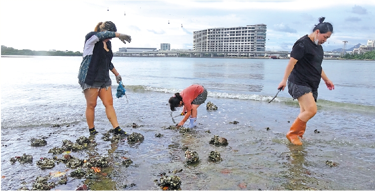 其中兩名女家長開心表示,今日趁假日特意帶小朋友和家人來打蠔捉蟹,雖然是首次,無經驗,但忙了幾小時,收穫還可以。不太擔心安全問題,會睇着潮水變化決定去留。