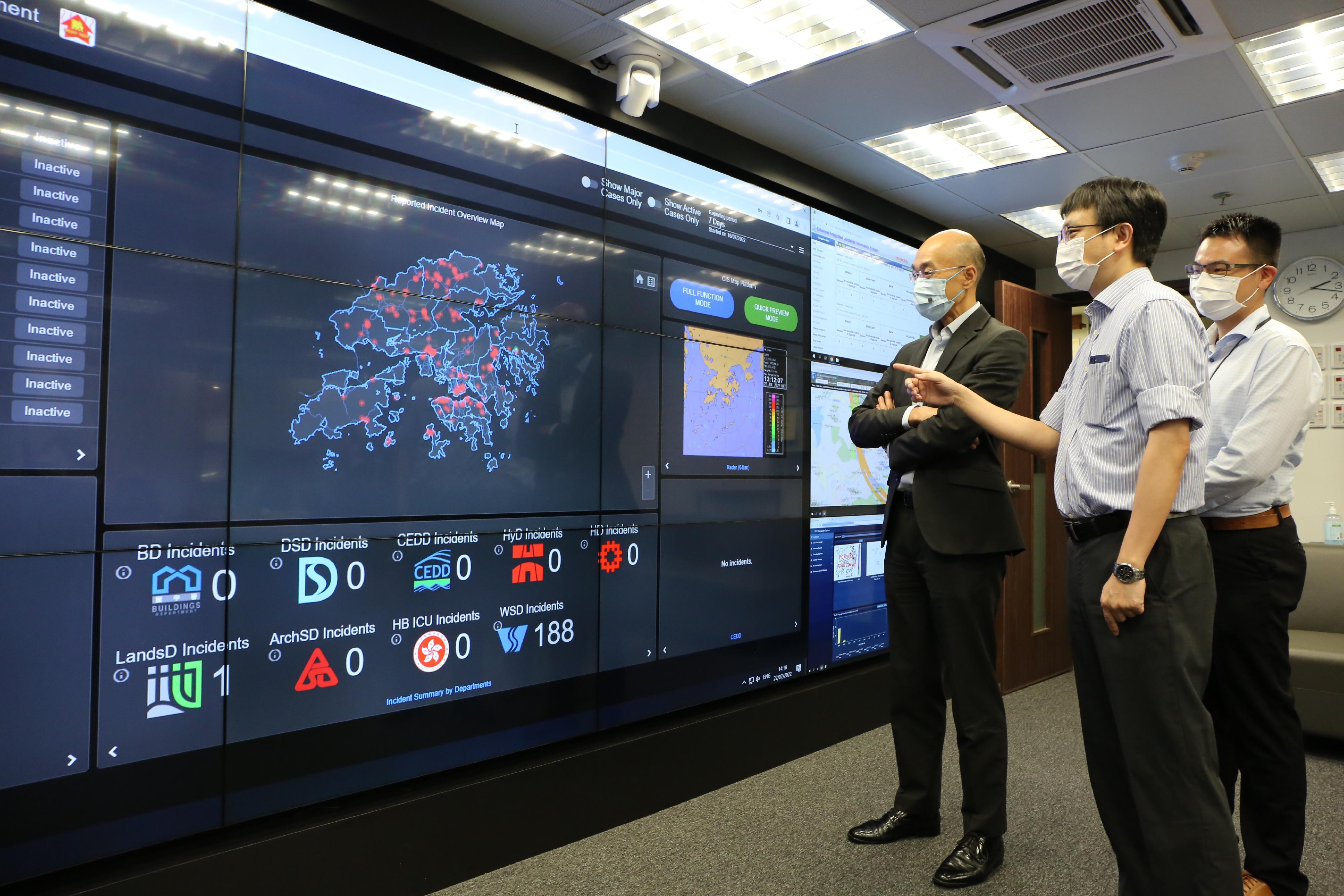 此外,方學誠亦於早前到訪土力工程處的緊急控制中心,了解部門應對緊急情況的準備工作。當山泥傾瀉警告或八號或以上熱帶氣旋警告信號生效時,土力工程處會啓動緊急控制中心,由13支緊急服務隊伍輪班當值。當緊急控制中心接獲山泥傾瀉報告,會適時調派土力工程師前往現場為各政府部門提供專業意見。