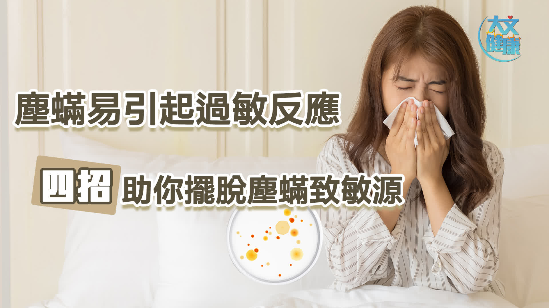 睡眠佔了我們人生三分之一時間,充足的睡眠更是維持健康所需。然而,你有否試過回到家中,想躺在床上好好休息時,卻忽然打噴嚏或皮膚痕癢?這可能代表你的床上已布滿可排出致敏物質的塵蟎。香港浸會大學一項研究報告指出,香港的家居平均每1克的塵埃樣本,就含有4.2隻至46.7隻塵蟎,即是每張床褥可潛藏10萬至100萬隻塵蟎,加上溫暖潮濕的香港,一年四季都容易助長塵蟎的繁殖,體質敏感人士必須加以防範。