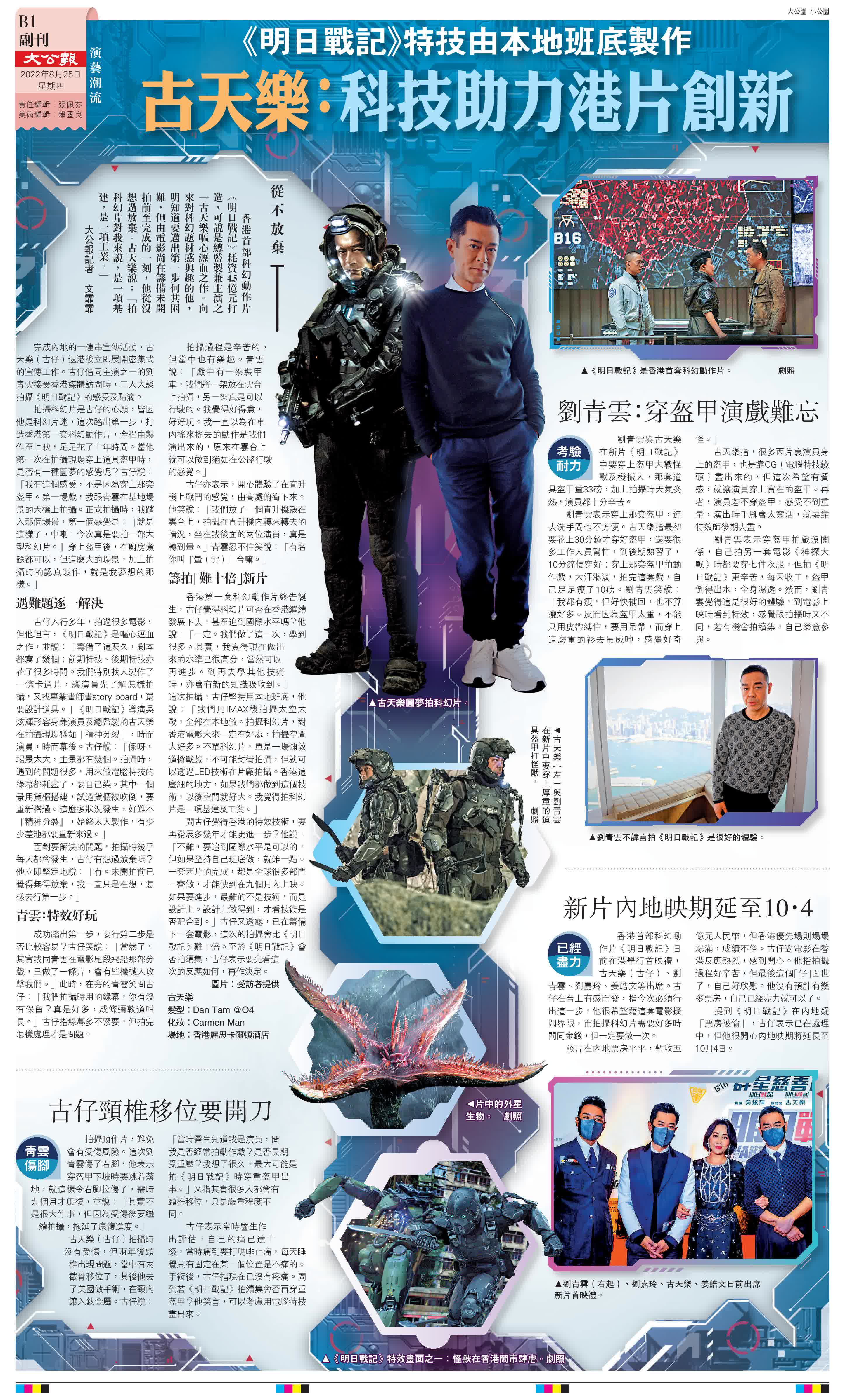 提到《明日戰記》在內地疑「票房被偷」,古仔表示已在處理中,但他很開心內地映期將延長至10月4日。