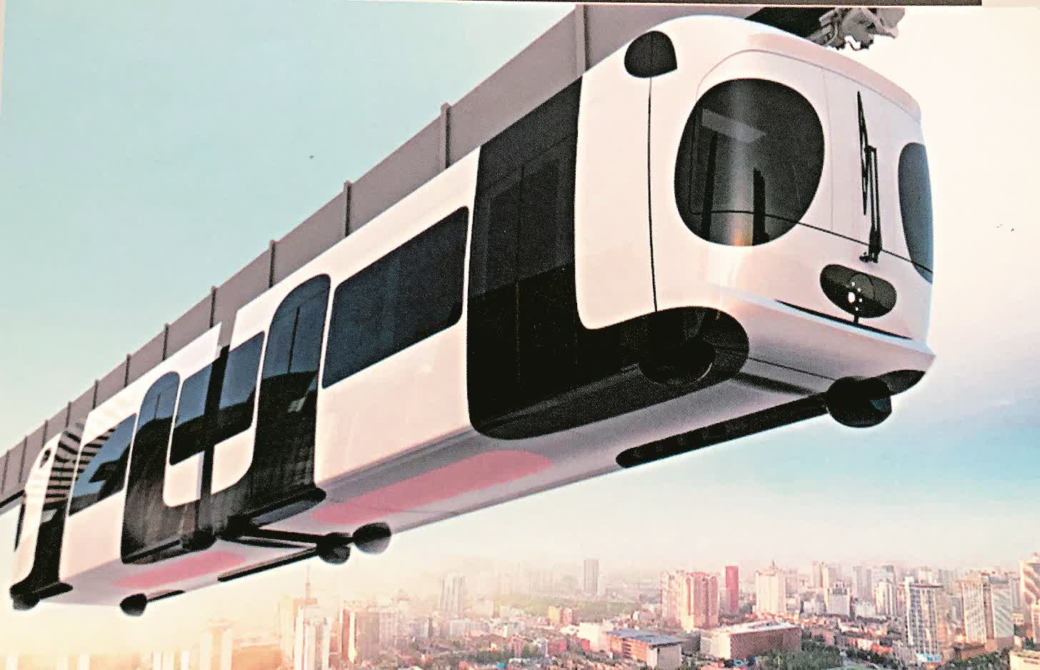•中國首列可以在空中運行的軌道列車,目前世界首條新能源空中鐵路試驗線已在成都投入運行。