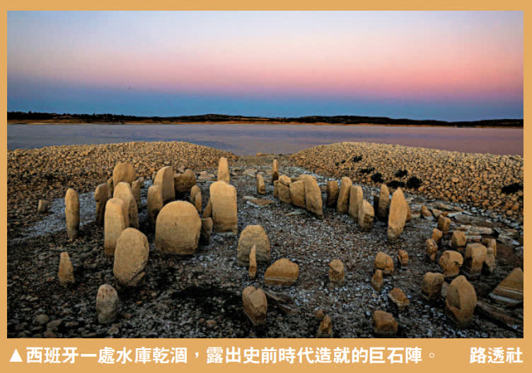 由於持續乾旱,西班牙中部卡塞雷斯省的瓦爾德卡納斯水庫中,一片據信可以追溯到公元前5000年巨石陣近期浮出水面。這片巨石陣正式名稱叫「瓜德爾佩拉爾石墓」,它們於1926年被考古學家發現,1963年當地實施農村興建水庫時被淹沒。從那以後,它只出現過四次。