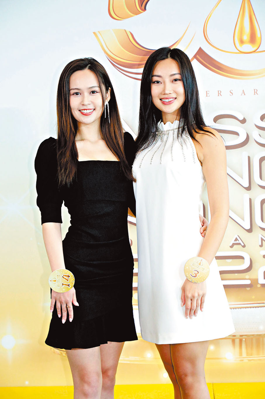 今天25歲生日的3號陳瑞菱,表示仍要綵排沒時間慶祝,希望完成工作後可以回家和家人吃蛋糕。問到生日願望是否想做冠軍時,她稱希望能在比賽中做到最好。14號梁超怡與陳瑞菱都是被看好的海外佳麗,梁超怡稱每位佳麗都各有優點,不存在海外比本地佳麗優勝,而且賽果也不到她去控制,最重要是做好自己和作出努力。至於有何準備會見大會評判?梁超怡希望在評判面前表現自己最真實的一面,可以像做朋友一樣交心。而陳瑞菱就稱沒有刻意背講稿,因她平時準備得太多反而會出錯,相信自己的臨場發揮。