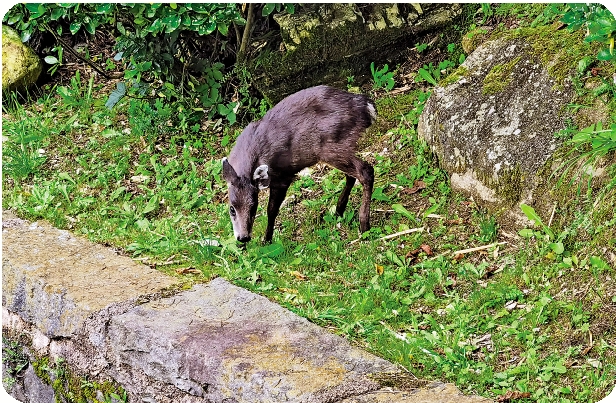 毛冠鹿驚艷亮相 大理景區覓美食