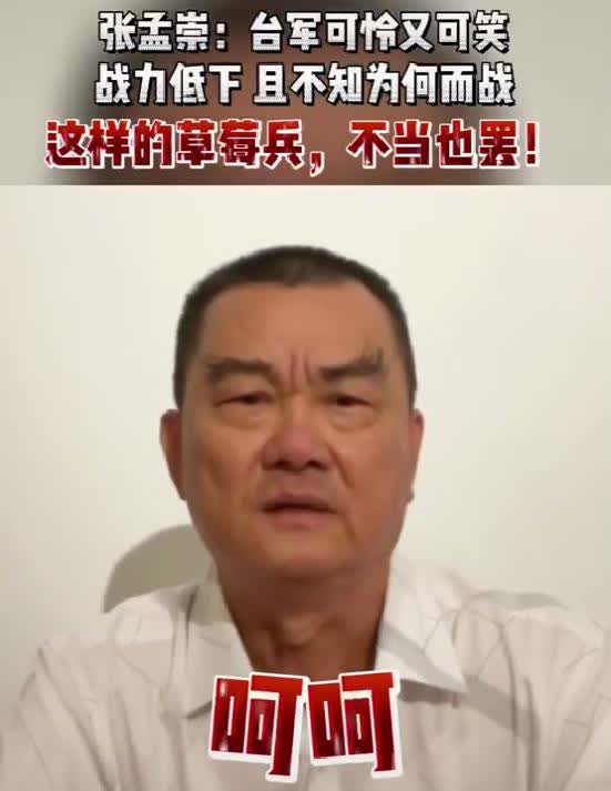 「呵呵!當兵當到這個份上,真是可憐又可笑,難怪台灣年輕人不願意當兵,現在台軍主戰部隊缺員達到25000人,台灣年輕人不願意當兵,不僅僅是因為台軍戰力低下,更重要的是他們不知道為何而戰、為誰而戰,當兵本來是為了保家衛國,可是在台灣當兵不但不是保家衛國,反而變成祖國統一的障礙。當成這樣的兵,即使戰死,也只是『台獨』的炮灰而已。這樣的草莓兵,不當也罷!」張孟崇說道。
