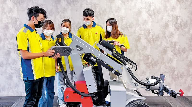 建造業培養新血刻不容緩,新地旗下新輝(建築管理)就有專門為大專學生提供的暑期實習計劃,今年更增添智慧科技和綠色建築培訓,新一批學員早前畢業,公司並安排學員參觀其新成立、位於科學園的科研中心,學習操作「安裝石矢板牆機械人」。