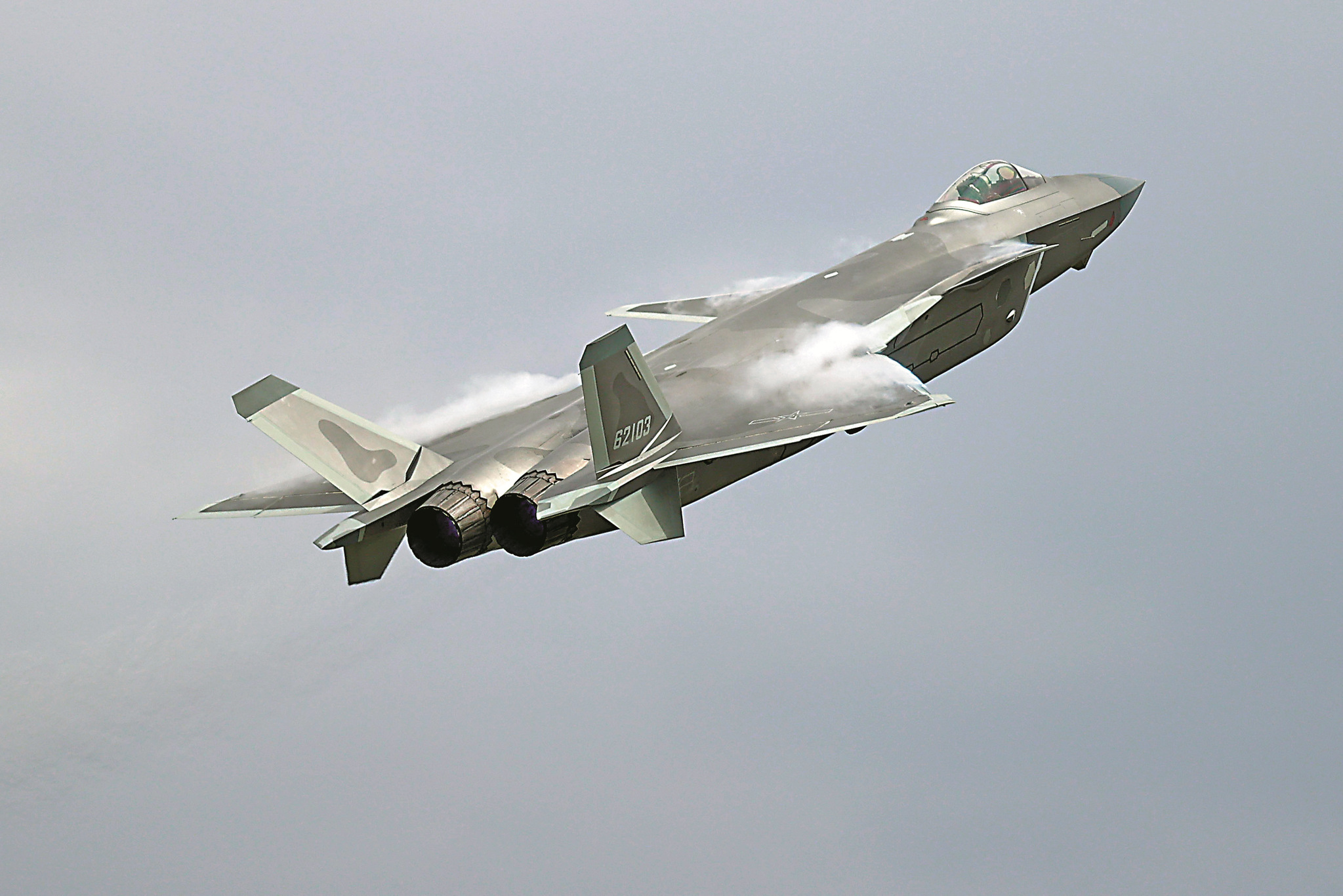 殲-20上場後超低空展示了空中急轉彎,平飛後直接大仰角穿雲,以幾乎垂直的角度直上雲霄。緊接着,連續做出了垂直翻轉、水平翻轉、大逆轉、滾轉360度等一系列機動動作。