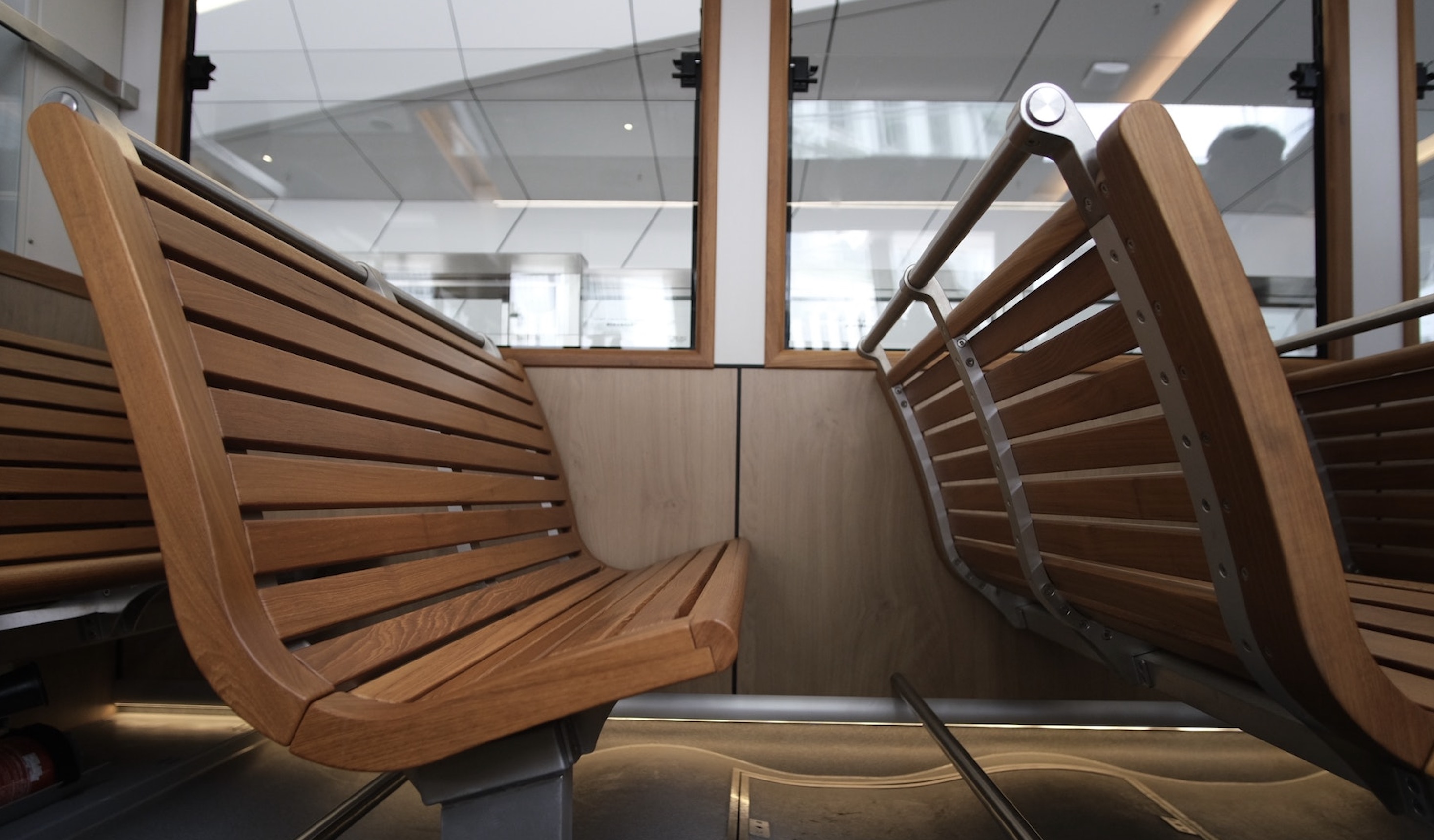 值得一提的是,新一代山頂纜車設有22個下行前向座位,它們於上山時屬於車尾位置,而落山時則屬於車頭。之所以會增加這一設計,山頂纜車有限公司總經理曾瑛美介紹說,過往有不少乘客反映不喜歡乘坐「倒頭車」,纜車公司才增加了這一設計,曾經也考慮改用如渡輪般可自行調節前後方向的座位,「但始終認為太危險,纜車的車程非常獨特,有不同斜度,是次新設的座位亦計算了最舒適的角度。」下行前向座位和車廂地面呈約20度的夾角,這樣的設計可以令乘客在下山前行安坐時,保持水平,毋須再坐「倒頭車」,更好地享受旅程及防止暈車。