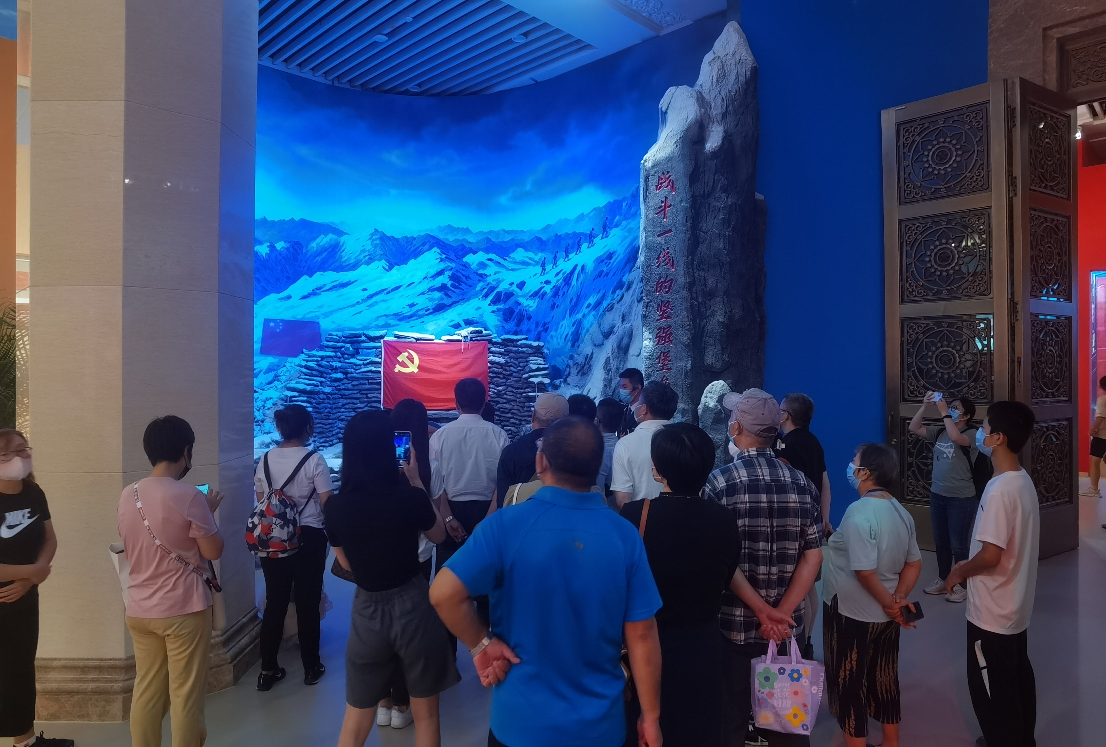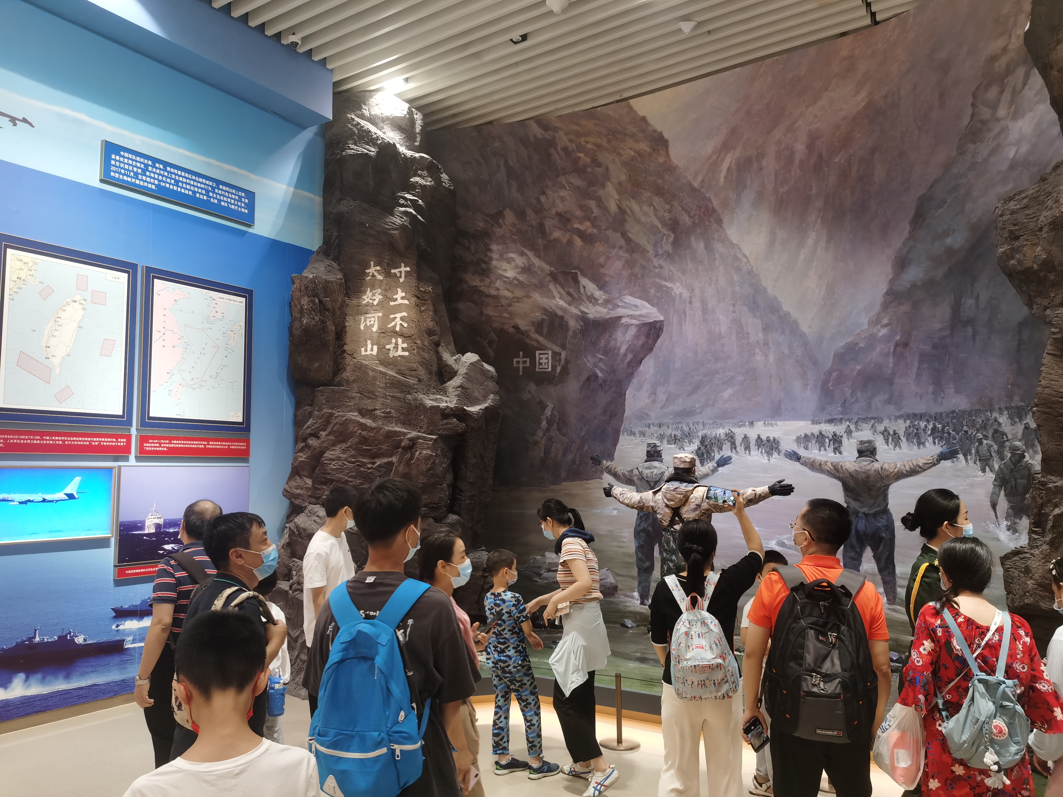「大好河山!寸土不讓!」在2020年6月中印邊境衝突的展覽前,北京的劉女士帶着孩子在展覽前久久駐足觀看。她告訴記者,看到這些烈士的英勇事跡,切實感受到我們現在的和平安定生活,真的是因為有人替我們負重前行,有人在保護我們,國家強大了,我們才能安享和平安定,要多向英雄們學習和致敬。