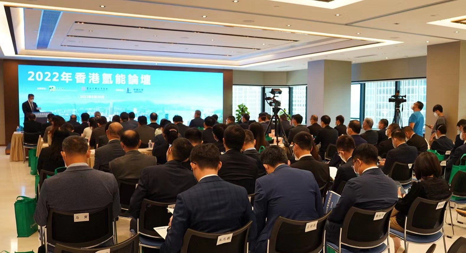 環境保護署、機電工程署、運輸署、消防處等15位特區政府部門嘉賓,氫能領域專家學者,中企協會能源行業委員會會員單位代表,其他企業代表和新聞媒體嘉賓等80餘人現場參會,另有六位專家學者通過線上視頻形式參會。環境保護署副署長馮浩然、中企協會副總裁曾燊典和中國石化集團副總經濟師、香港代表處總代表蔣振盈出席論壇並致辭。