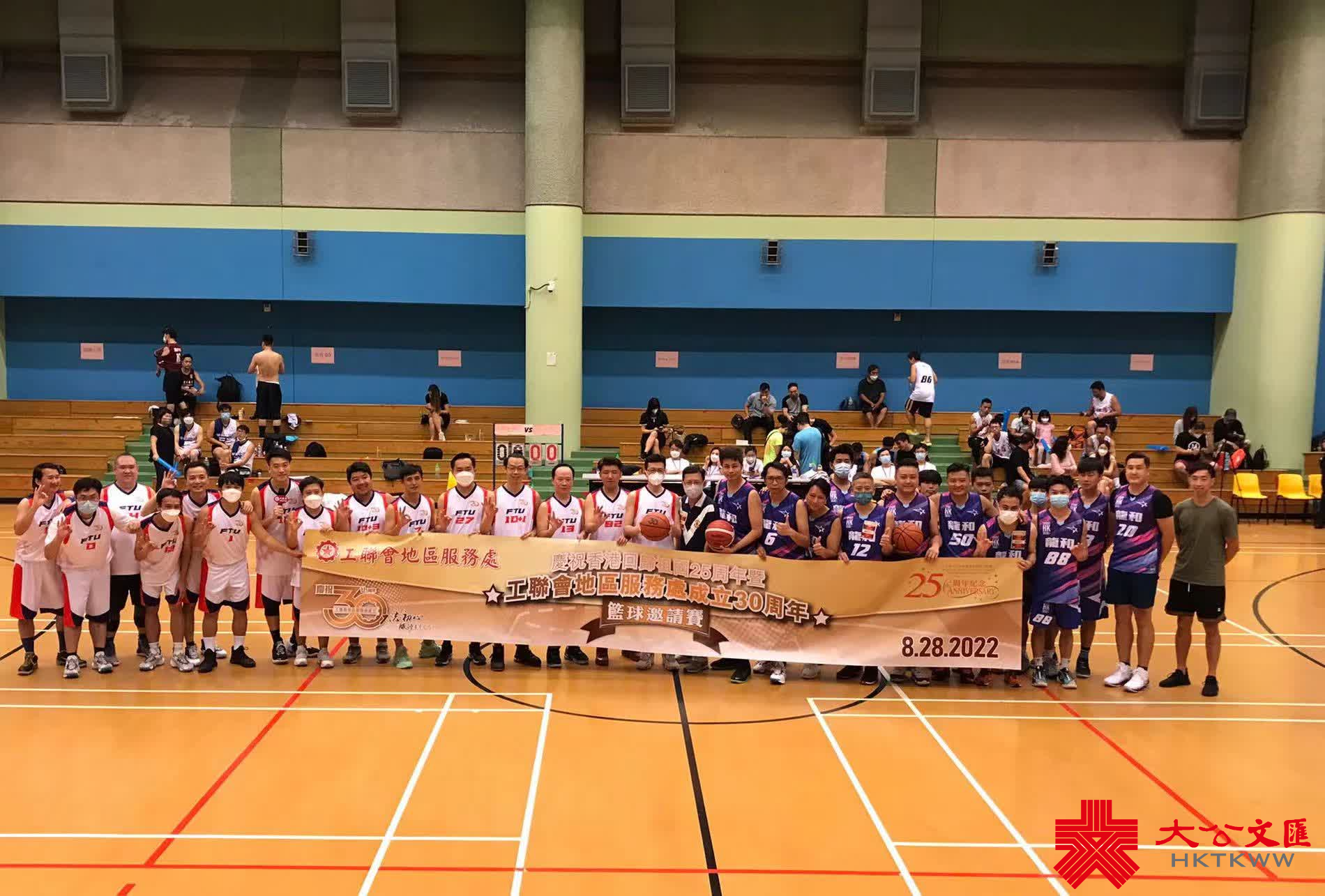 大公文匯全媒體報道,為慶祝香港回歸祖國25周年暨工聯會地區服務處成立30周年,工聯會地區服務處是日(8月28日)下午於荃灣荃景圍體育館舉辦「慶祝香港回歸祖國25周年暨工聯會地區服務處成立30周年籃球邀請賽」。是次活動邀請到工聯會吳秋北會長﹑荃灣民政事務專員區家盛先生親臨主禮並為在場健兒打氣。是次參賽隊伍陣容鼎盛,包括邀請到由多位現屆立法會議員鄭泳舜﹑何俊賢﹑郭偉强﹑陸頌雄﹑鄧家彪﹑陳學鋒﹑李世榮及姚柏良等組成的「立法會龍和隊」﹑香港菁英會常務副主席林智彬帶領的「香港菁英會隊」﹑新民黨青年委員會主席劉文杰帶領的「新民黨青年委員會隊」﹑青年民建聯主席施永泰帶領的「青年民建聯隊」﹑工聯會青年事務委員會主任林偉江帶領的「工聯青委隊」﹑「龍騰志青隊」、「東青GO隊」、「港CHING工作室隊」及「西菁隊」隊伍參與,場面熱鬧,更體現以運動比賽成為團結社會各界及增進彼此友誼的精神。