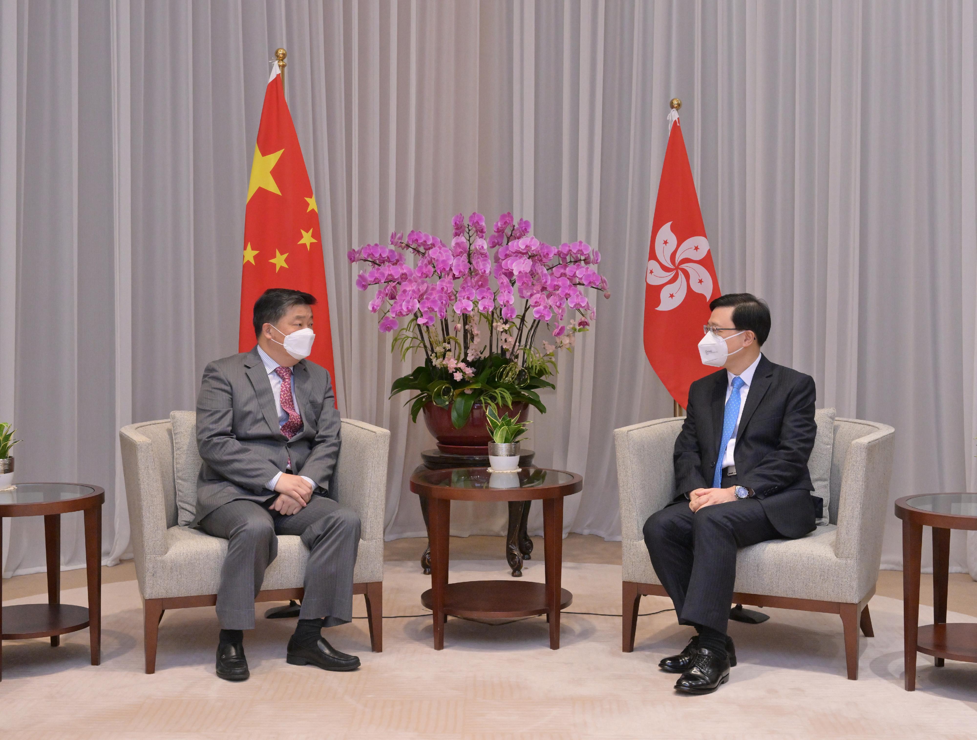 李家超歡迎歐陽衞民與國開行代表訪港。他感謝國開行多年來積極支持和參與香港債券市場、互聯互通機制和綠色金融的發展。他又指國開行除了支持金融發展外,亦支持香港國際機場三跑道系統建設和香港首個海上液化天然氣接收站項目的融資,對香港經濟發展貢獻良多。