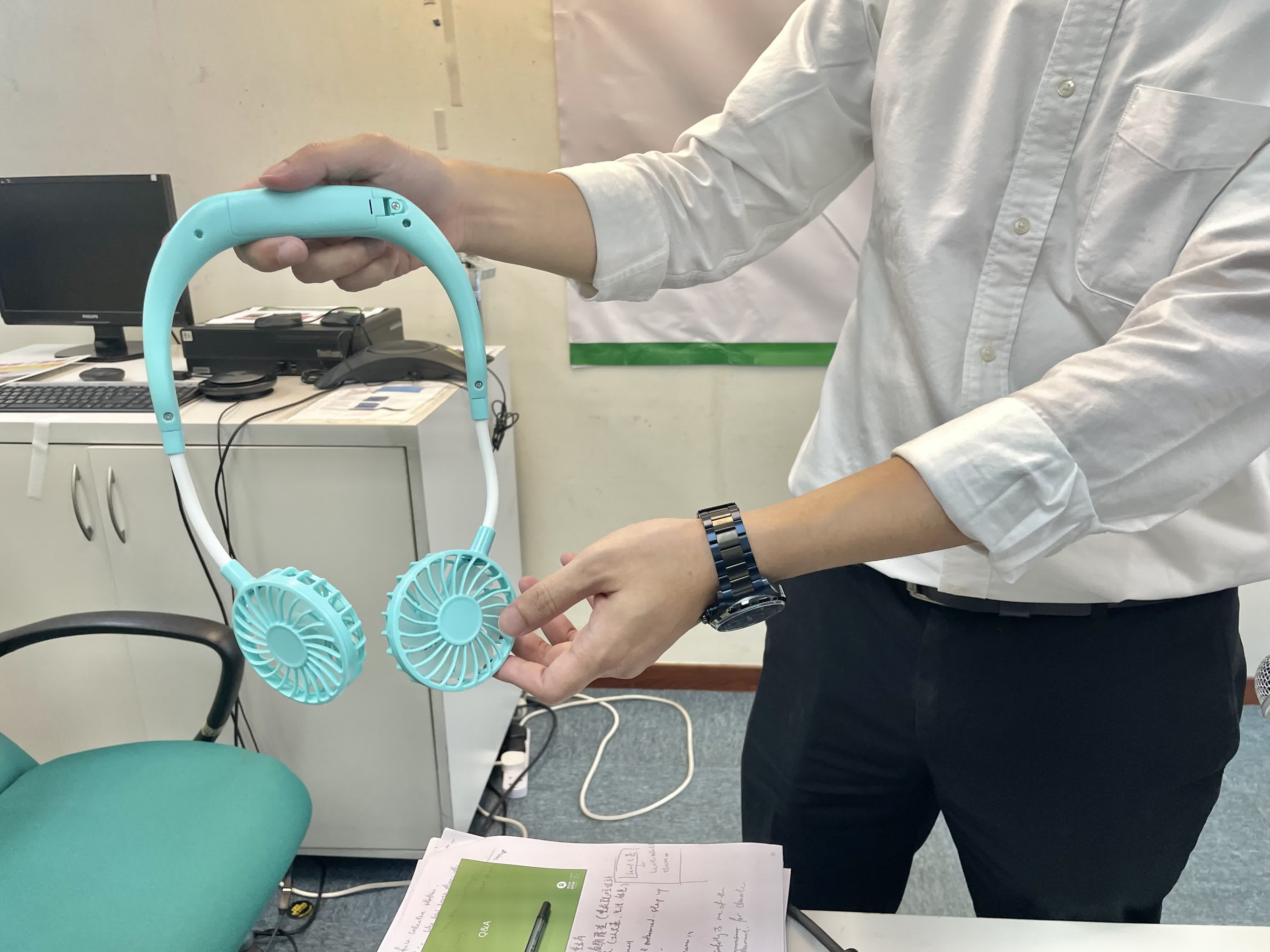 樂施會港澳台項目總監黃碩紅表示,在酷熱天氣下,戶外工作的清潔工友不只要在烈日下曝曬,回到垃圾站同樣猶如置身蒸籠,甚至連基本的休息設施都欠缺,令工友難以好好喘息回氣。政府現時的氣候變化措施較著重「減排」,而協助社會上較脆弱一群「適應」氣候變化亦相當逼切。樂施會將陸續向逾4000名清潔工友派發掛頸及掛腰風扇,藉此加強清潔工的氣候適應能力,減輕他們在酷熱天氣下患上暑熱病的機會。