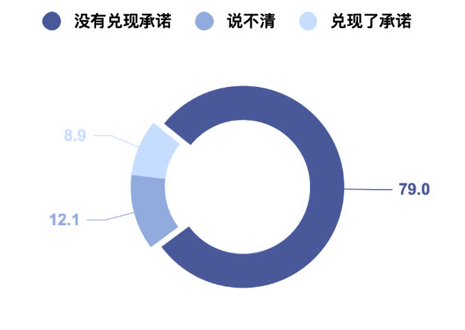 駐軍之初,美國曾做出「建立一個穩定、強大和繁榮的阿富汗」的承諾。20年後狼狽撤軍,美國兌現承諾了嗎?調查中,認為美國兌現了承諾的阿富汗受訪者僅有8.9%,而認為美國「沒有兌現承諾」的受訪者佔比卻高達79%。此外,美國政府標榜為阿富汗帶來了民主和自由,全球63.6%的受訪者卻在調查中表達了否定的觀點。