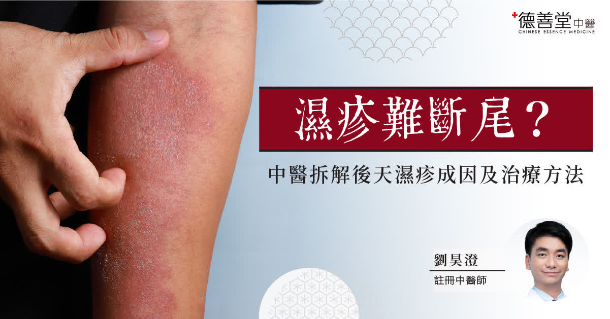 總而言之,後天濕疹成因林林總總,中醫師需辨明濕疹患者的病因、證型,才可找出適合的醫治方案,靈活施藥。想濕疹斷尾,需按中醫理論循序漸進地調理臟腑,先清除濕邪,再健脾扶正,改善過敏體質,同時亦要避開致敏原,減少濕疹反覆復發。當患者機體回復平衡,皮膚就能自我修復,這才是真正擺脫濕疹。