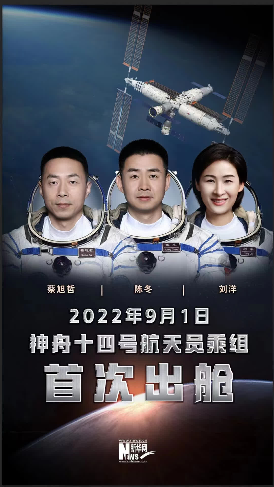 關鍵詞:神舟十四號航天員乘組陳冬劉洋出艙