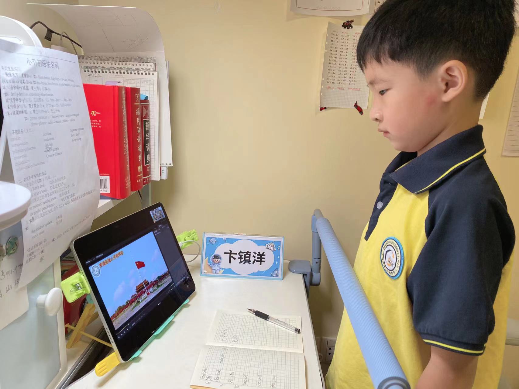 (大公文匯網記者李望賢 深圳報道)9月1日為開學日,受近日疫情影響,深圳各學校暫緩返校,紛紛在線上舉行開學典禮。在羅湖港人子弟學校,眾多深港學子也通過這一特殊的形式開啟新學期,升國旗、奏國歌,學生身着整潔的校服,戴着鮮艷的紅領巾,隔着屏幕敬隊禮,致敬祖國。
