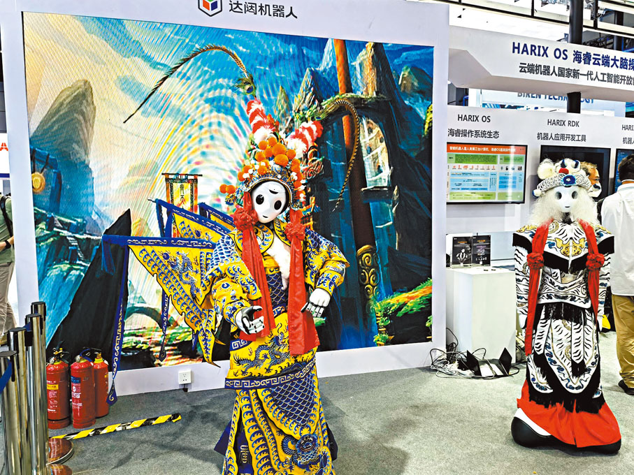 咿咿呀呀唱着「你方唱罷我登場」,在會場的主展區,兩台京劇裝扮的機器人正輪流表演戲曲節目,吸引大量觀眾圍觀。這是達闥機器人的智能成果展示,機器人通過「雲端大腦」接收表演指令,而之所以能做出大量柔美的戲曲動作,則得益於該公司自主研發的智能柔性關節(SCA)。「我們研發的這款柔性關節無論在成本控制上還是智能先進性方面,都可以說是全球領先的,它最小可以做到一元硬幣大小,價格只有國際同類產品的十分之一,這個機器人就安裝34個智能柔性關節,『雲腦』與SCA的結合,讓剛硬的機器人也可以做到輕柔的服務,這項技術我們還將運用在生活服務機器人上,讓未來的機器人可以上下樓、做事更靈活。」