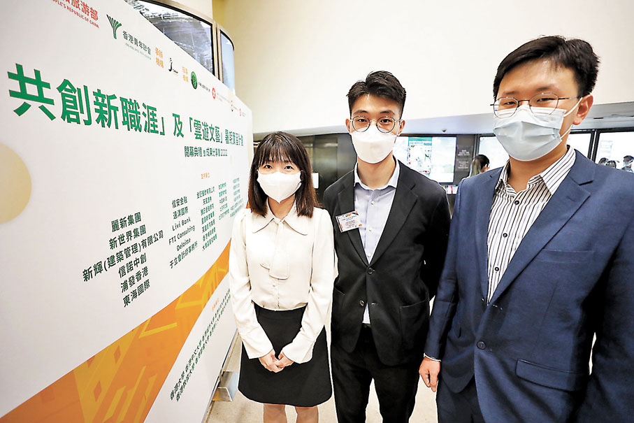香港青年聯會與香港青聯學生交流網絡推出的「共創新職涯」及「雲遊文藝」暑期實習計劃閉幕典禮暨成果分享會昨日在港舉行,多位有份參與「雲遊文藝」網上實習計劃的大學生在會後接受香港文匯報訪問。