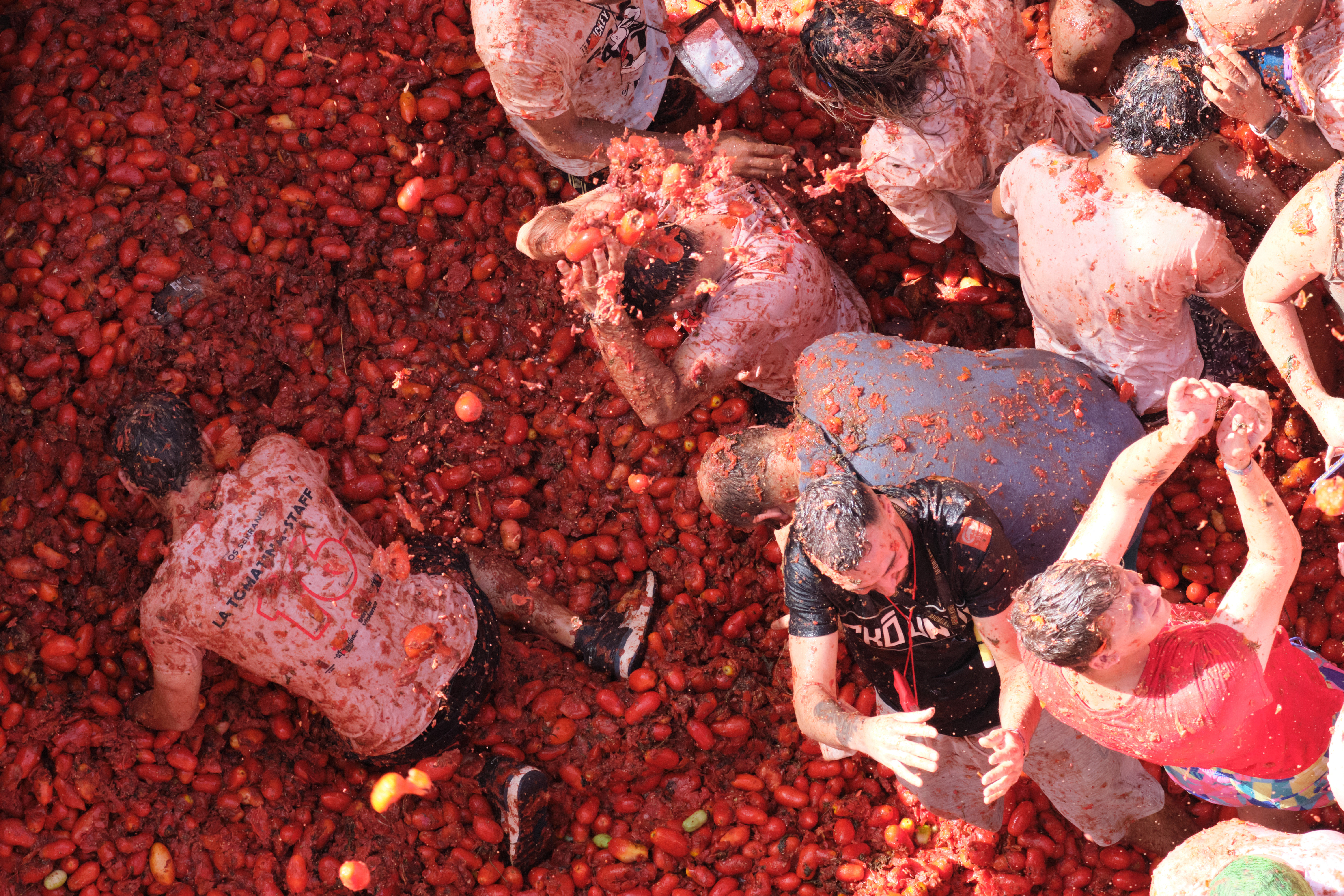 據悉,每年8月最後一個星期三,西班牙巴倫西亞地區的布尼奧爾小鎮都會舉行傳統節日——「番茄節」。數以萬計的參與者從世界各地趕來參加一場不會造成傷害的混戰,在大街上投擲熟透多汁的番茄。該活動起源於1945年,經過77年的發展,已成為布尼奧爾鎮牢固的傳統和城市特色。
