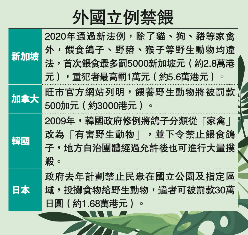 梁浩文指出,白鴿屬華南地區的物種,並非香港獨有,有如紅火蟻及白紋伊蚊均屬外來入侵的物種,來到香港作棲息地,適應本港環境,因而是馴化類動物。他又稱,明白漁護署為遏止野豬餵飼活動而加強相關法例執法,但需列出相關界線、準則及豁免,「唔好啲街市商販在街市內餵白鴿,咁又犯法被罰。」