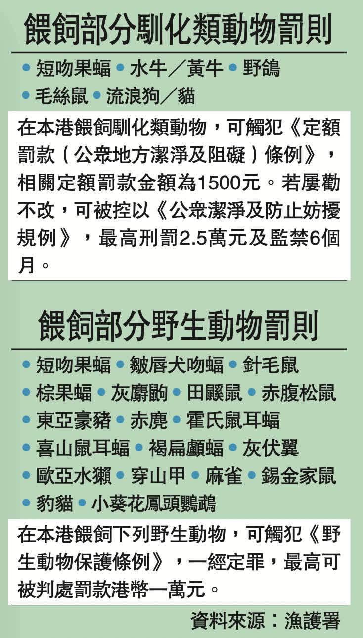 消息一出,頓時引起社會對野生動物或馴化類動物的關注。香港不少市區與山脈接壤,市民接觸野生動物的機會頻繁,再加上流浪動物出沒,若未能清楚了解禁餵野生動物法例,隨時墮入法網。