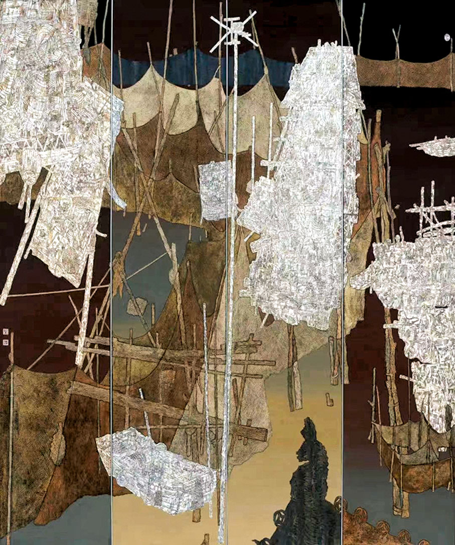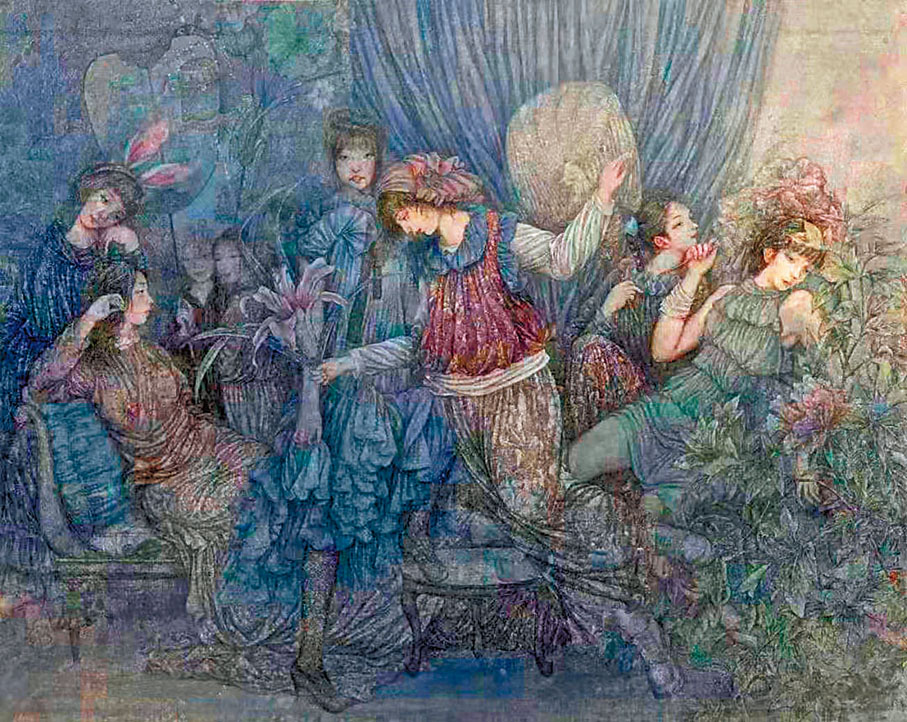 改革開放時期,江蘇畫壇興起了新文人畫潮流。這股傳統復興潮流,以反對西方寫實造型對傳統文人畫的改造為思想主張,以回歸傳統筆墨、張揚藝術個性、表現精神心理為表現形態。在工筆畫創作上,他們在宋代花鳥畫,明清兼工帶寫的人物畫、山水畫中尋找創作靈感和可以轉化的傳統資源。在工筆人物畫方面,他們更多地在晚明陳洪綬那些怪奇的人物造型中獲得了反叛寫實的依據。在花鳥畫方面,他們力圖避開「陳喻體系」那種明朗的基調,既追求宋畫格物的嚴謹,也追求絹本宋畫因歲月流逝而形成的古舊痕跡。及至當下,藝術家在觀念更新的同時,綜合使用各類豐富的媒介與材質,對傳統審美經驗、經典圖像以及文化邏輯等提出了新的思考與回應,呈現出江蘇工筆畫在當代語境下的傳承與探索姿態。