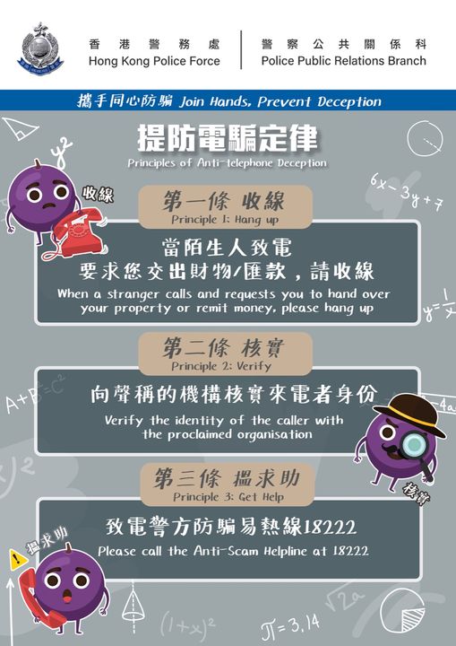 警方提醒,執法人員或政府機構職員均不會要求市民提交網上銀行戶口密碼及財產,如有懷疑,應致電「防騙易熱線18222」查詢。