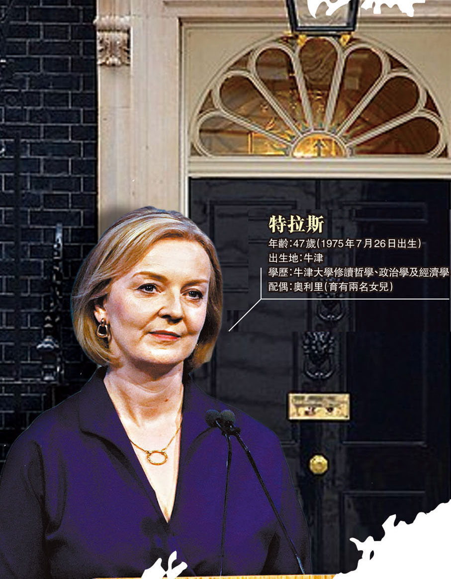 香港文匯報綜合報道,英國執政保守黨黨魁選舉經過近兩個月的投票後,結果昨日出爐,外相特拉斯以57.4%得票率勝出,她今日會接受英女王伊利沙伯二世任命成為新首相。特拉斯上任後首要任務是應對英國通脹飆升及民眾生活成本高漲問題,據報她計劃凍結英國家庭的能源費用兩年,涉資達1,000億英鎊(約9,019億港元)。英媒指出,特拉斯將接手自前首相戴卓爾夫人時期以來最差的局面,任內將面對重重挑戰。