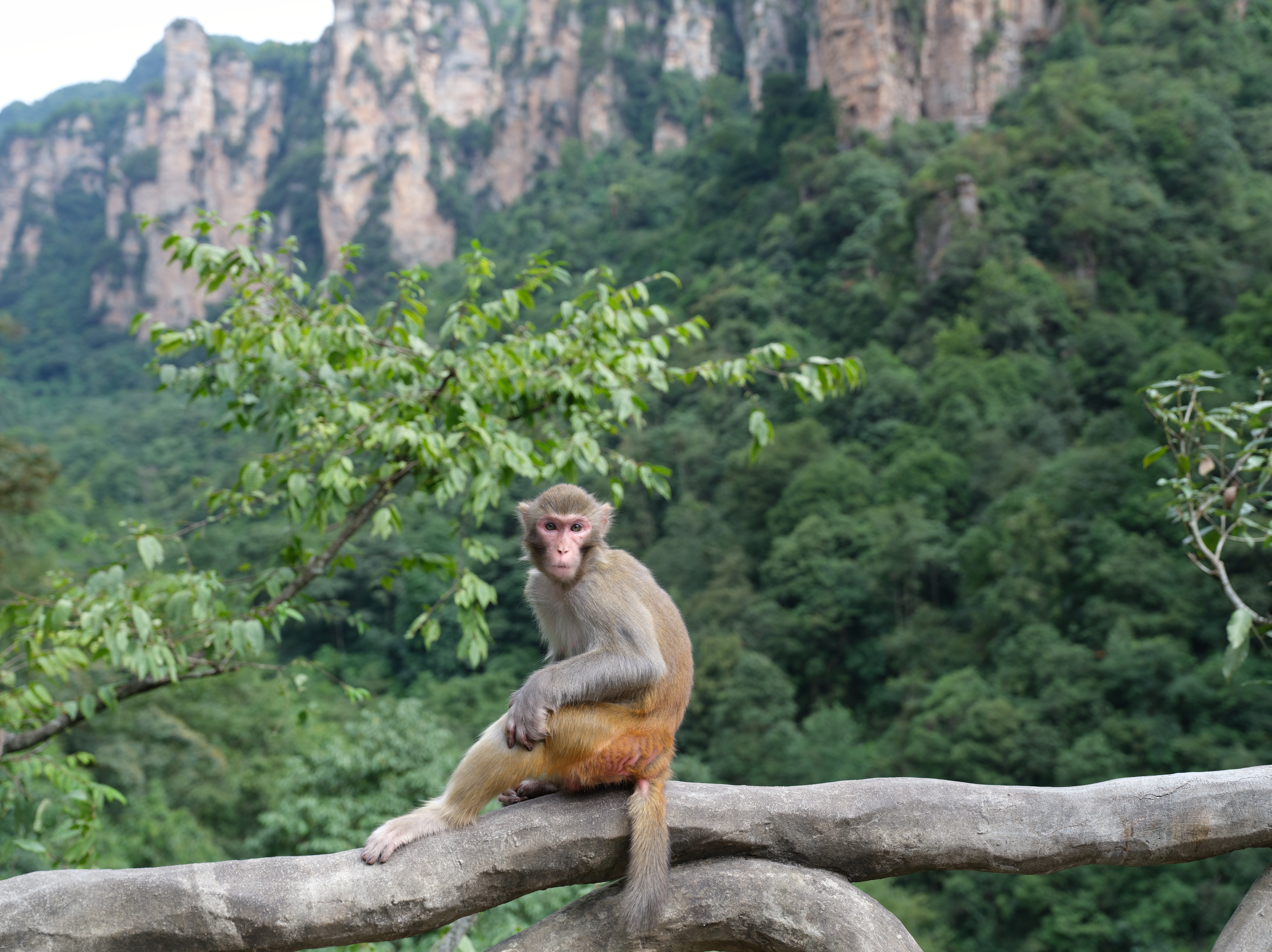 據介紹,張家界景區的猴子均為野生獼猴,屬獨自生存型野生動物,為囯家二級保護動物。每隻成年獼猴體長51-63厘米,是典型的獼猴屬動物,主要特徵是尾短,有頰囊,軀體粗壯,它們的前肢與後肢大約同樣長,拇指能與其它四指相對,抓握東西靈活,前額低,有突起的棱。據估計,張家界景區共有野生猴子1000多隻。