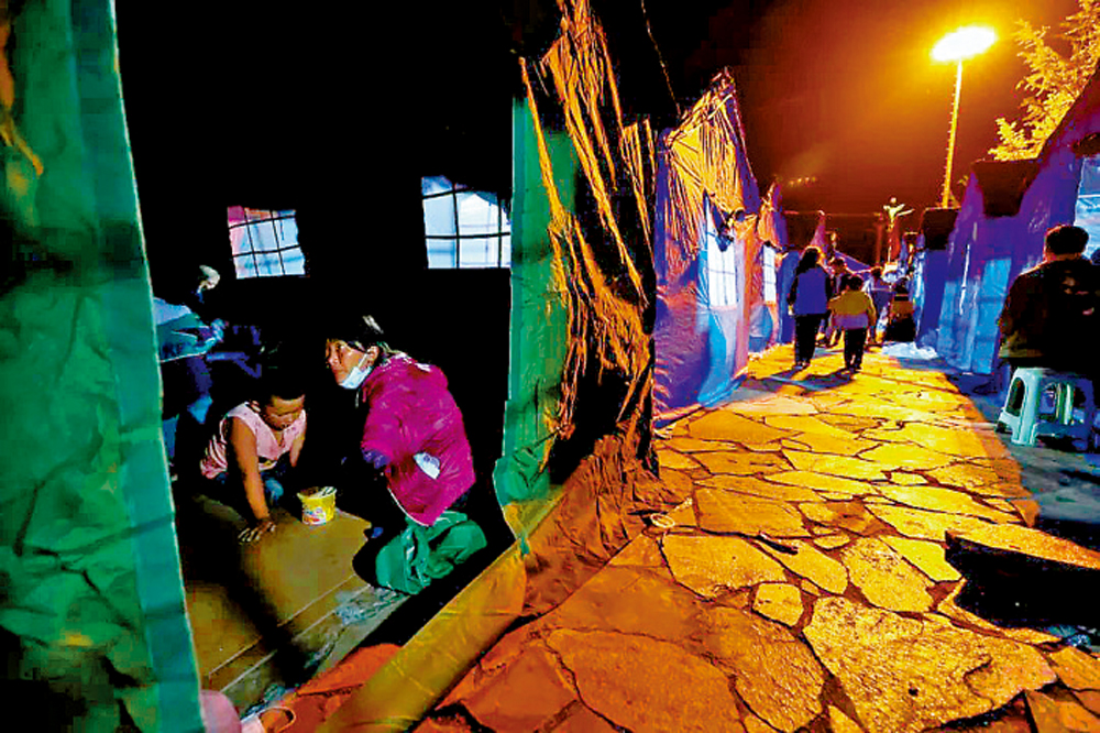 9月5日晚10點,夜間的瀘定縣氣溫已降至18攝氏度。隨着夜色漸深,安置受災群眾是德威鎮磨子村村幹部倪國軍最迫切的任務。房屋坍塌的,牆上爬滿裂縫成了危房的,都需要帳篷。有防震效果的磨子村村委會的活動室,成了臨時安置點。倪國軍說,由於電力設備遲遲未能修復,磨子村仍舊是斷電斷網的狀態。黑黢黢的夜裏,村民四處拼湊了手電筒和蠟燭,撐起一片難得的光明。