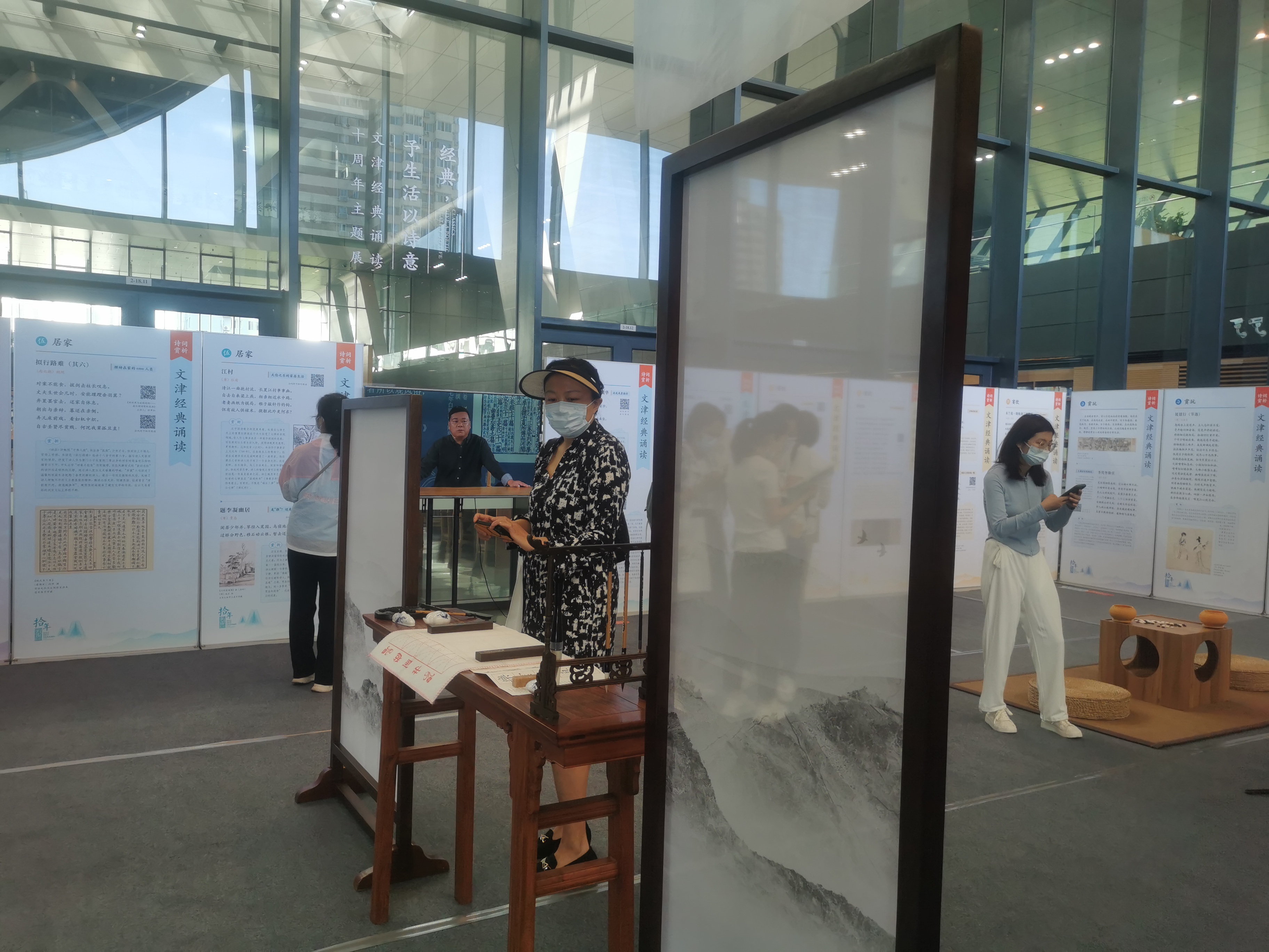 「文津經典誦讀」是國家圖書館於2012年8月推出的經典文化推廣項目。十年來,該項目堅持以「一日一詩一格言」的服務形式,從浩如煙海的中華典籍中累計選出了經典詩詞、美德格言共計7300餘條,短訊服務共發送1000萬餘條。項目致力於打造線上線下融合立體的傳統文化推廣模式,策劃推出詩詞徵集、詩詞主題講座、詩詞音樂會、詩詞展覽等形式多樣的詩詞文化活動,讓書寫在古籍裏的詩詞活起來。