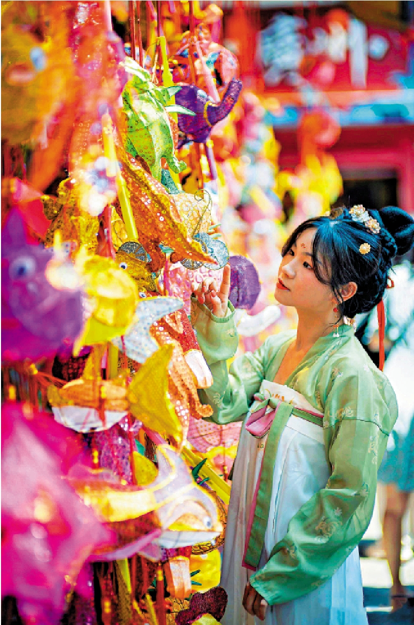 拿着手機進行打卡直播的博主,掛着長槍短炮尋找靈感的攝影師,小小店舖內人來人往卻井然有序。這樣的場景近幾年中秋前夕都會上演。造型受年輕人、小孩子喜歡的手工燈籠陸續上市,照亮了廣州的夜空,為這個傳統節日增添更多情懷和味道。