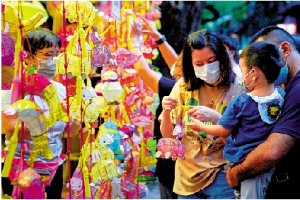 已經選定了玻璃紙小飛機的小朋友南南,又從五花八門的燈籠中選出了「叮噹貓」和「小狗」,這是他為表哥和幼稚園同學選的中秋禮物。南南媽媽去年偶爾在短視頻中看到關於手工燈籠的介紹,就專門帶着3歲多的南南前來尋找,今年已是第二次,希望藉此讓南南從小接受傳統文化的薰陶。
