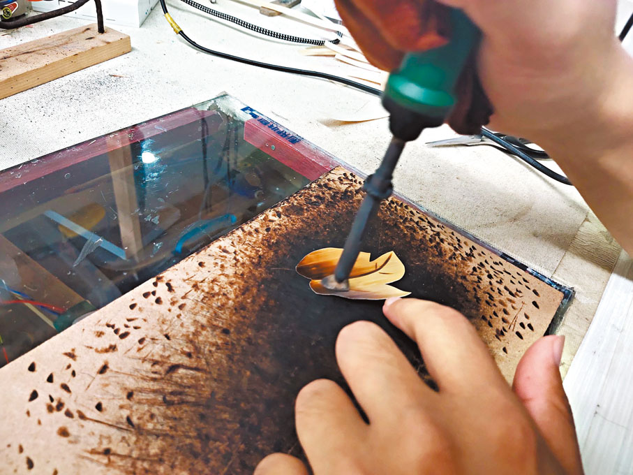 如今,潘長江對於蘆葦的熨、燙、剪等工序都已經很熟練,平均三四天能夠完成一幅作品。蘆葦畫中深淺不一的顏色,是高溫的電熨斗在剪開的蘆葦平面上燙出的痕跡,燙的溫度越高,痕跡的顏色就越重。潘長江的技術已經達到通過燙面的溫度就能感知顏色輕重的水平,這也使他成為所有學員的總教練。大家稱他的經歷是「從羊倌到藝術家」。「當我在這裏領到薪水的那一刻,我明白了自力更生,也意識到了自我存在的價值。」潘長江說。