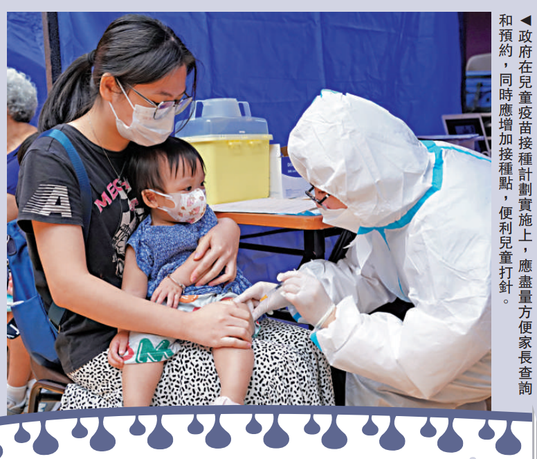 大公文匯全媒體報道,公務員事務局局長楊何蓓茵今日(8日)表示,因應「疫苗通行證」適用年齡將會降至5歲,特區政府明日(9日)起增加5至11歲兒童接種復必泰疫苗的名額,並即時可在網上預約。她說,預計在生效日期前會有較多市民前往接種疫苗,所以請各位家長盡早安排子女前往接種疫苗,以免子女因所選的疫苗接種點滿額而未能在生效日期前符合「疫苗通行證」的要求。