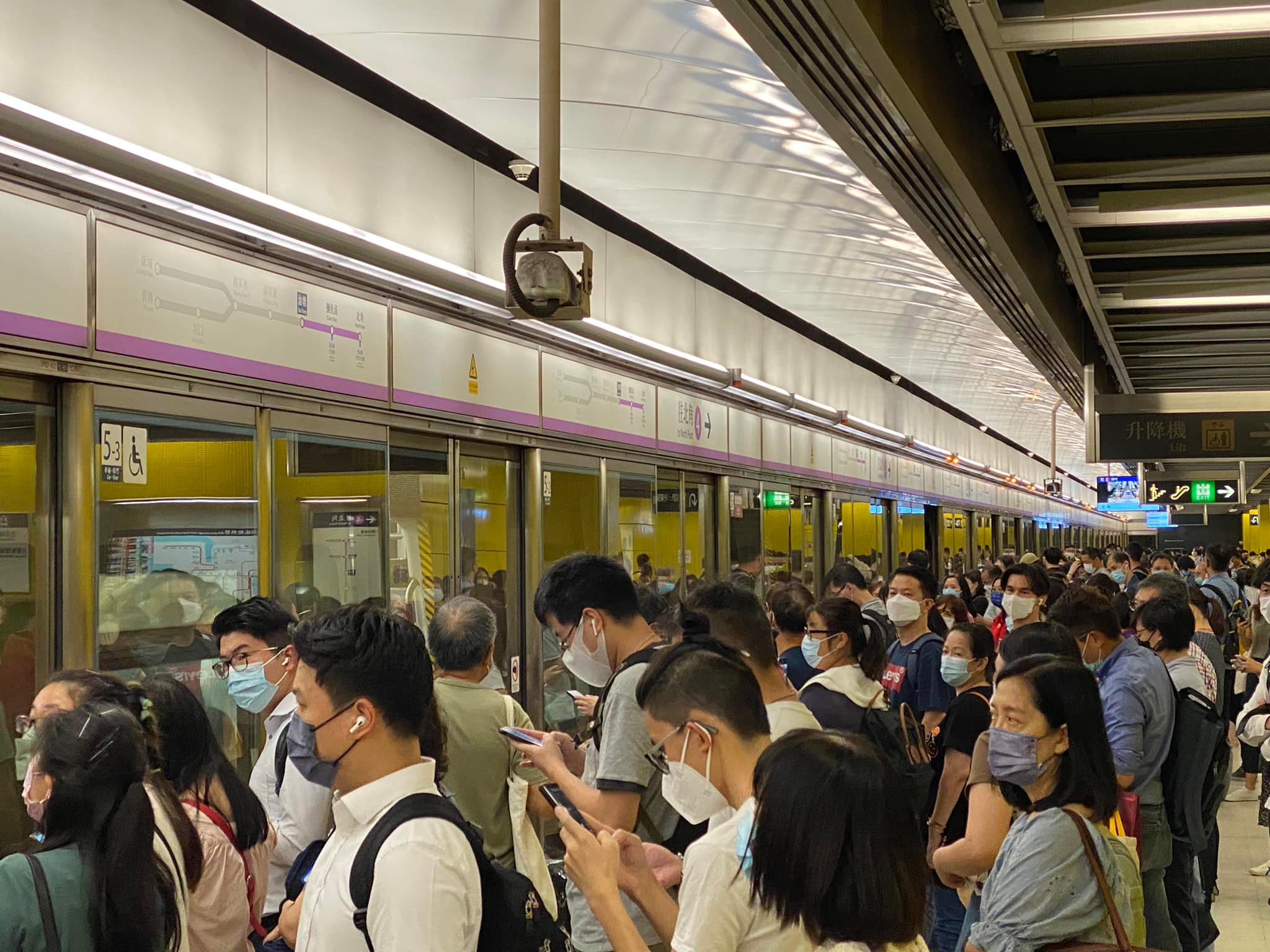 大公文匯全媒體報道,現時正值放工繁忙時間,港鐵今日(8日)晚上表示,由於油塘站4號月台出現月台幕門故障,現時將軍澳綫列車服務受阻,請乘客為行程預留充裕時間。據網友表示,北角站現時人頭湧湧,人流行進緩慢。