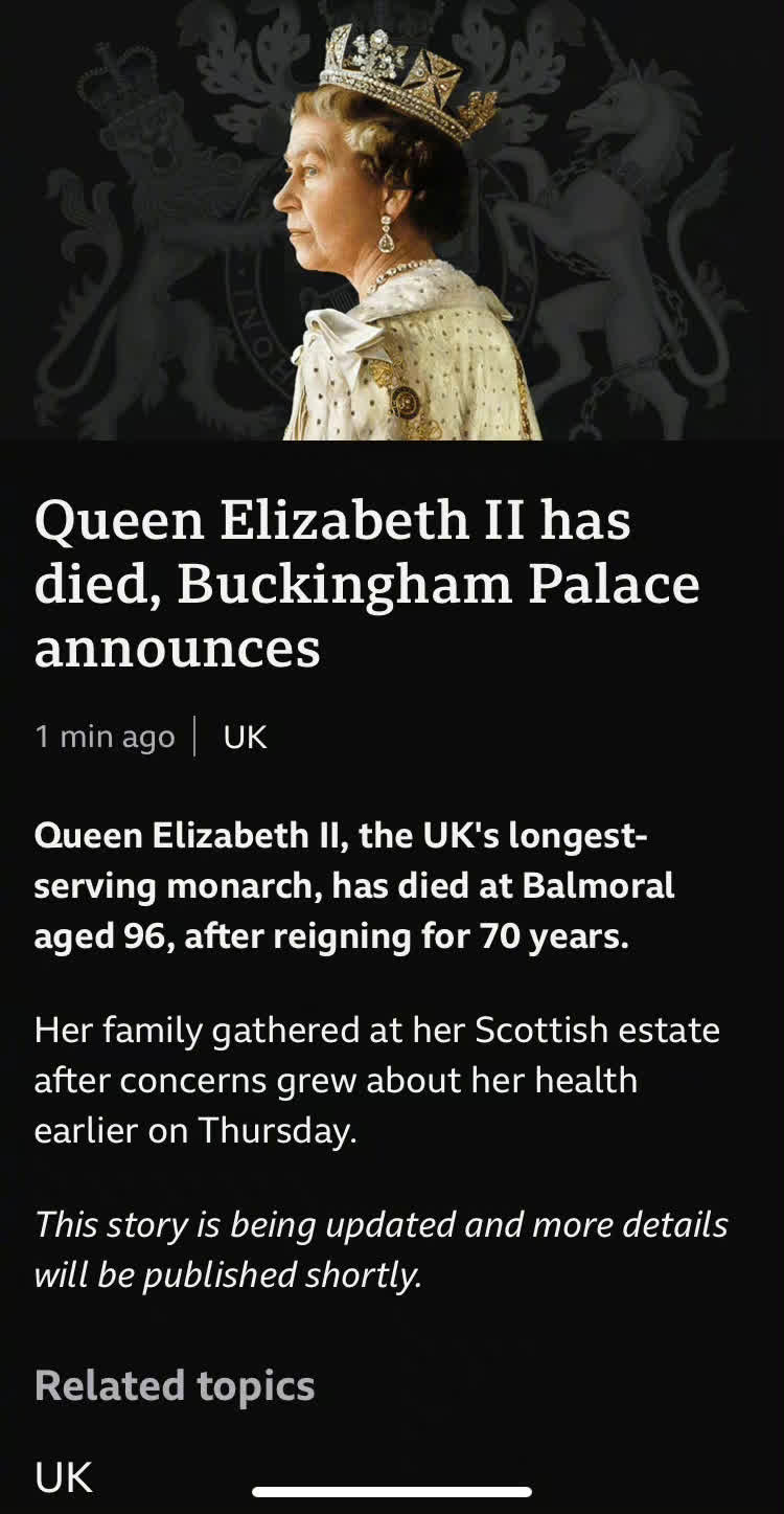 大公文匯網報道,當地時間9月8日,英國女王伊麗莎白二世在蘇格蘭巴爾莫勒爾城堡去世,享年96歲。