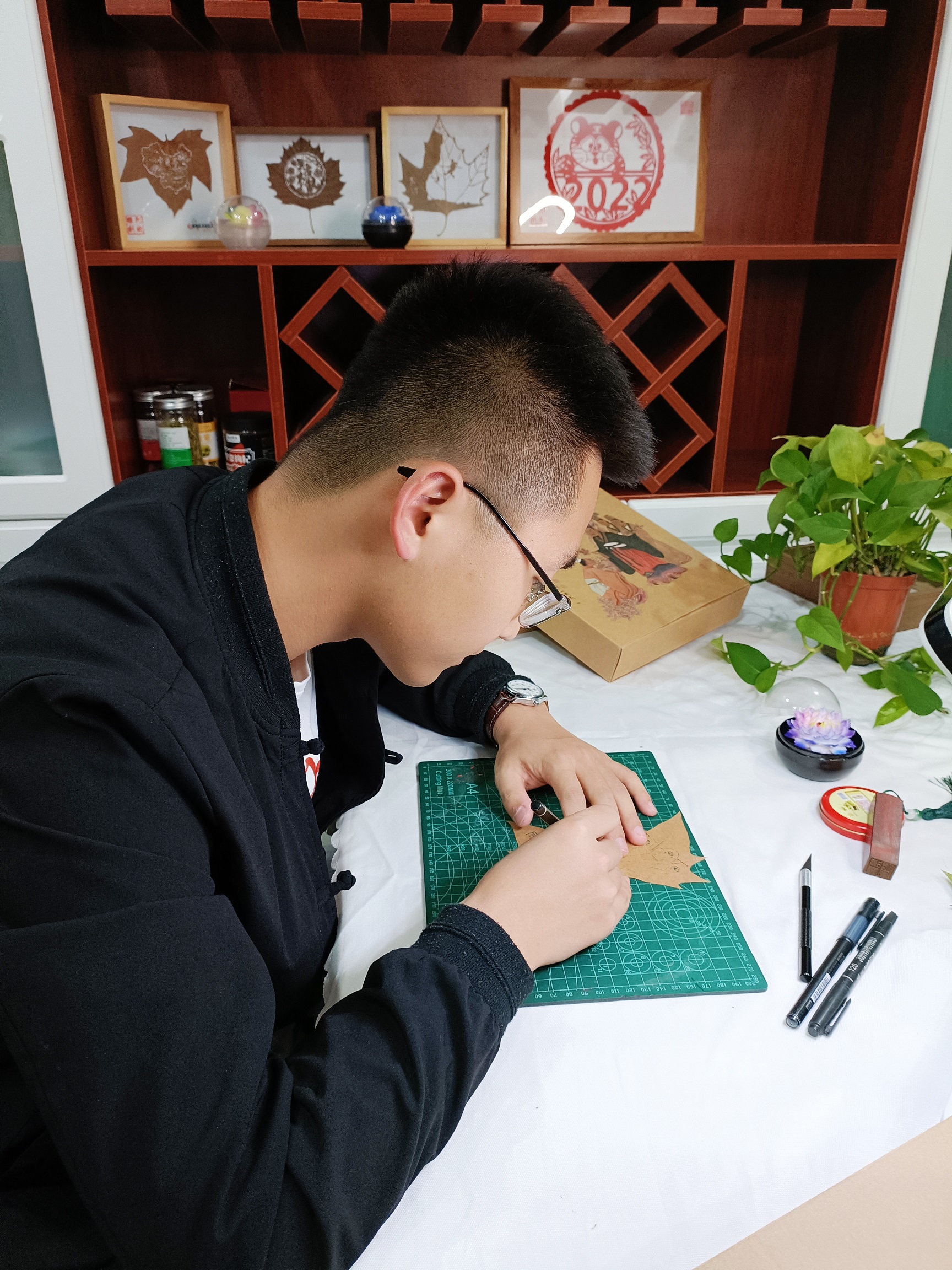 時彥斌如今還在大學就讀,他在學校裏成立了葉雕技藝社團,有時候也在社會上招收學員,平時會給社團成員和社會上的學員們上課。他的學員中最小的才8歲,剛上小學一年級,小學員的家長決定讓孩子學習葉雕,是為了讓孩子有一個好的業餘愛好,同時陶冶情操。