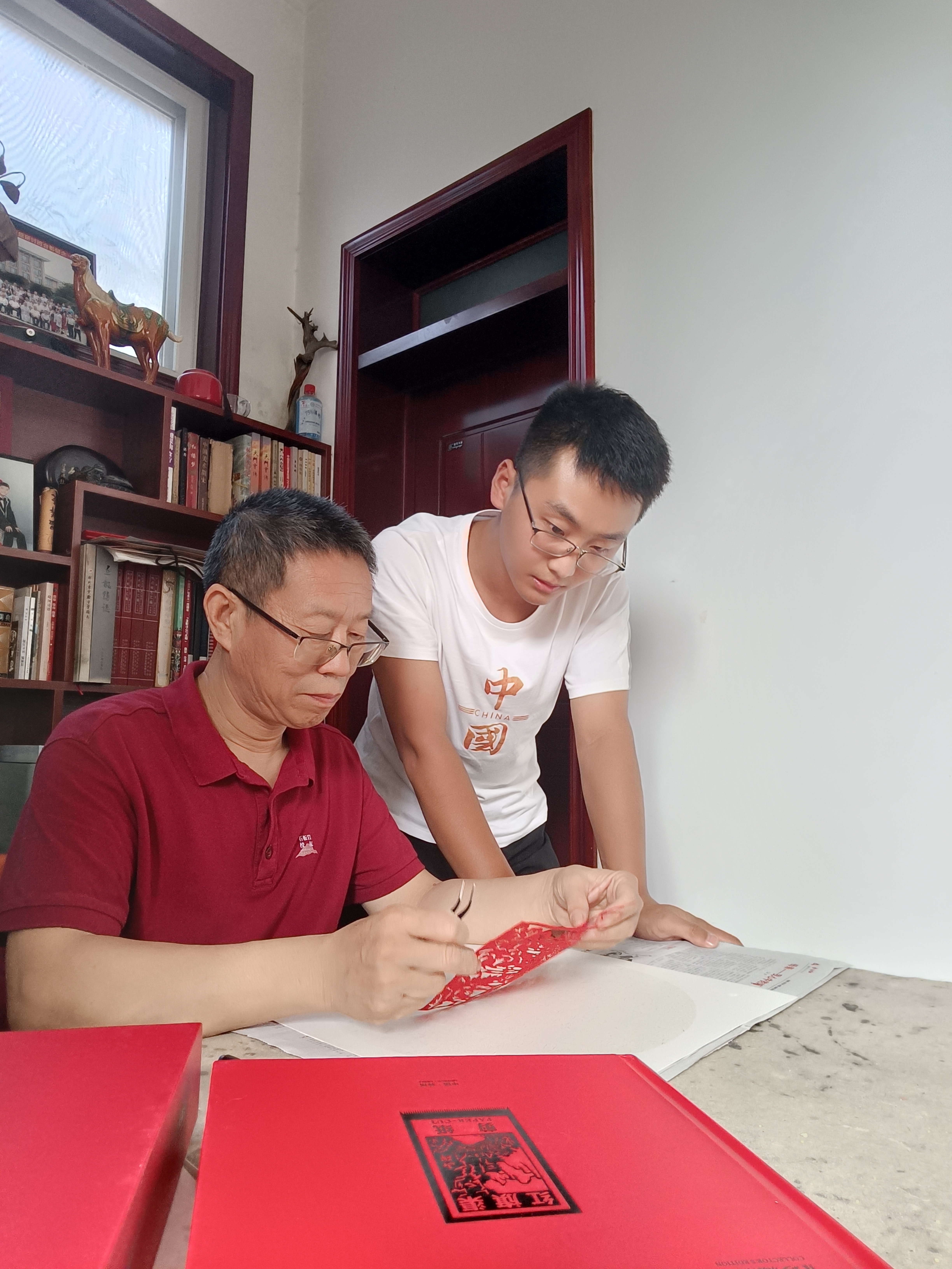 在時彥斌的成長道路上,靳林峰對其指點甚多。靳林峰是中國民間文藝家協會會員、安陽市民間文藝家協會副主席、林州市民間文藝家協會主席、安陽市非物質文化遺產項目「靳氏剪紙」傳承人。「葉雕是在處理過的樹葉上進行雕刻,從事葉雕需要兼具剪紙、繪畫、書法等功底,靳老師在剪紙和綜合審美方面對我幫助很大。」時彥斌表示。
