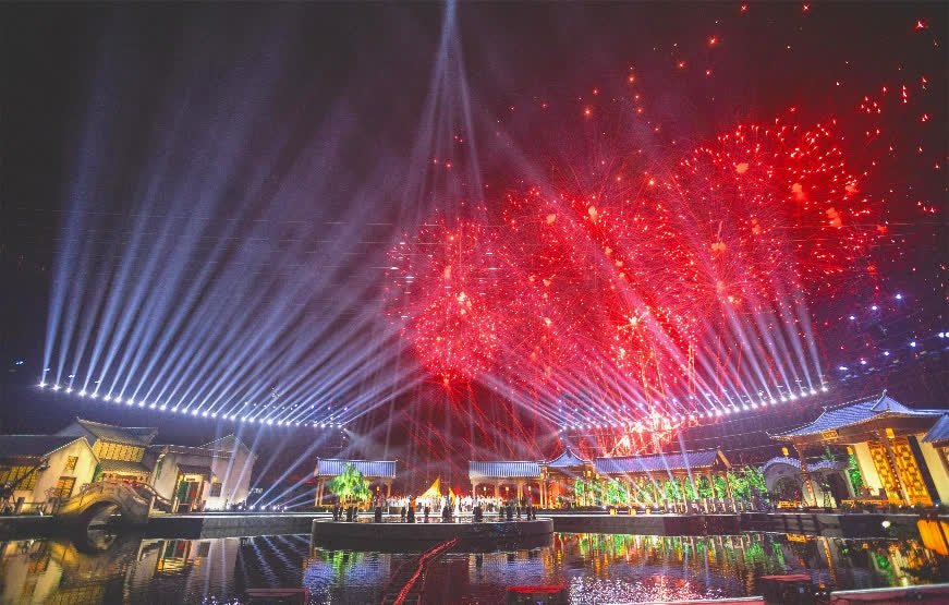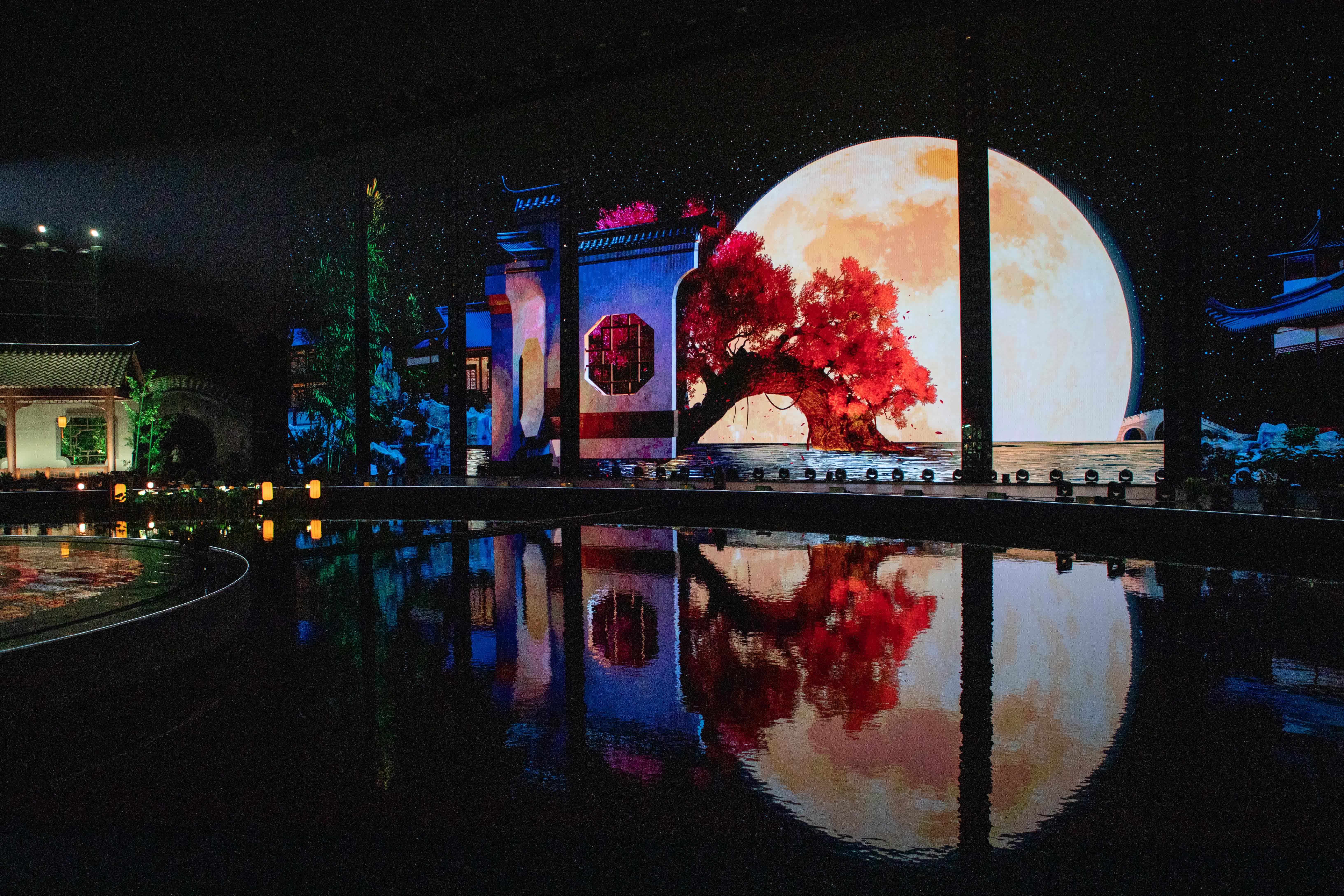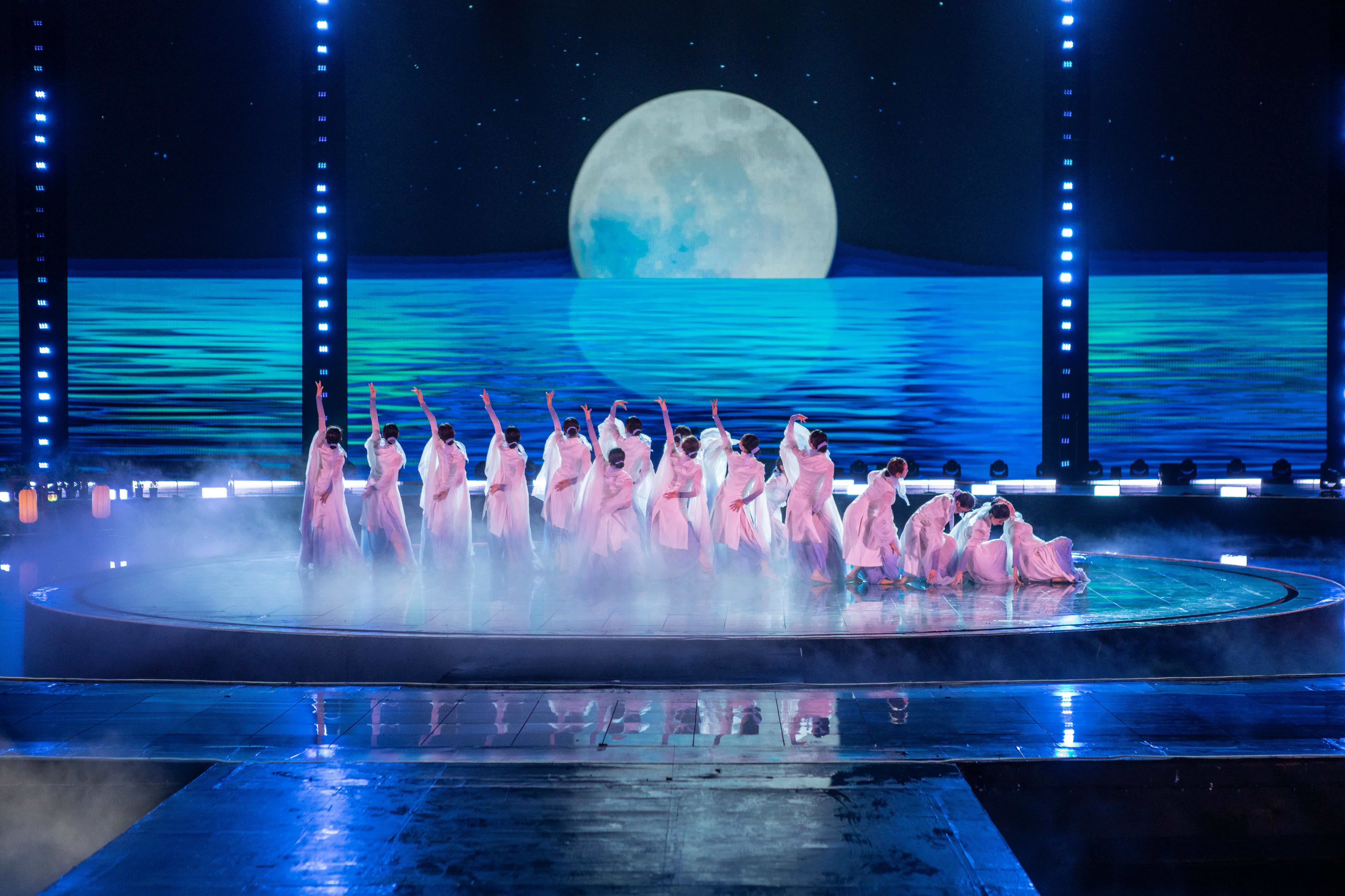 在新技術手段的支持下,藉由融合外景拍攝、虛擬製片與實景山水於一體的場景營造,舞台時而穿行江南水鄉、時而穿越歷史甬道,營造出濃濃的團圓氣息。