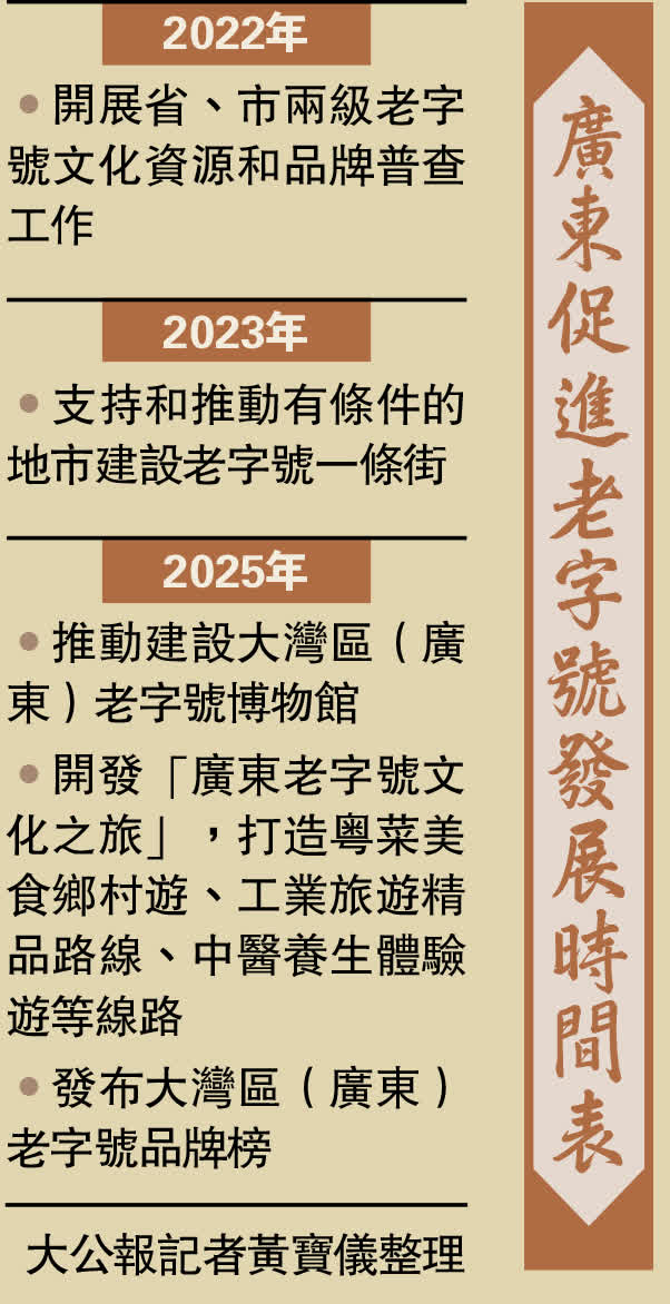 (大公報 記者 黃寶儀)廣東日前就促進老字號創新發展出台22條措施,提出到2025年,認定100家「廣東老字號」企業,並建成大灣區(廣東)老字號博物館等,通過保護傳承和創新發展並重,打造集約化國際化的發展平台,創新現代化多元化運營模式等措施,促進老字號的發展。專家認為,粵港澳三地的老字號有一定歷史傳承和商業聯繫,香港資本與廣東老字號可以相互借鑒、創新出彩。