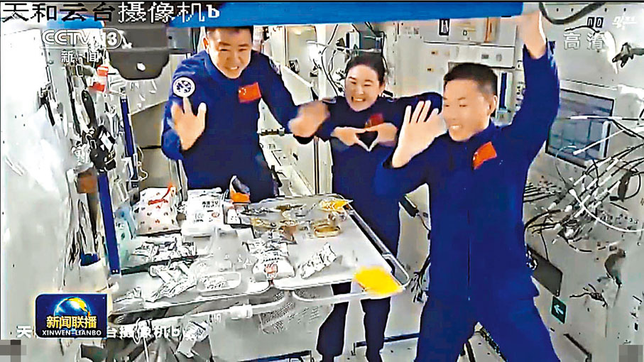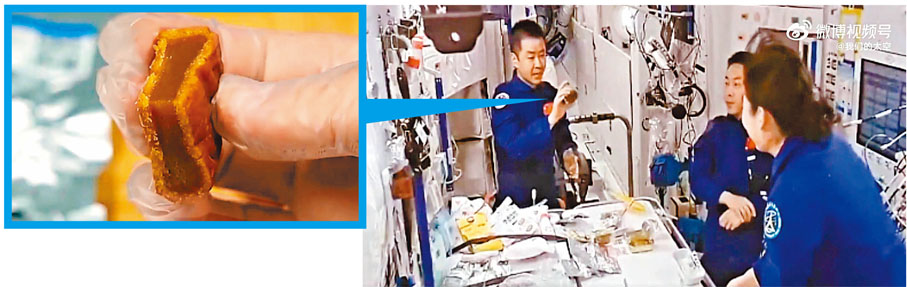 (香港文匯報記者 劉凝哲 北京報道)天地共賞月、同心慶佳節。2022年的中秋節,是中國航天員首次在太空中度過的中秋節,他們進行了太空出艙的訓練並完成太空站的照料工作,通過天地連線與家人、地面團隊團聚。咬一口漂浮在空中的月餅,享用一頓別開生面的節日大餐,特別是吃上了自己親手種植的太空生菜,他們還通過央視的中秋晚會為全國人民送上中秋祝福,太空站的首個中秋節洋溢着節日幸福的氣氛。