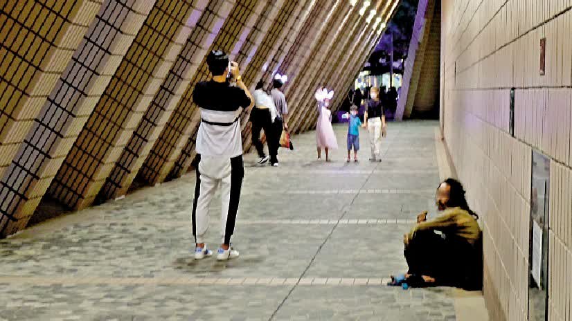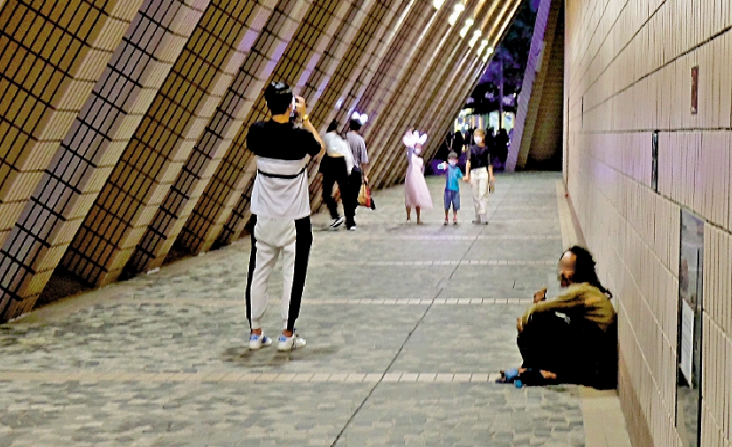 (大公報記者 伍軒沛)中秋節晚上的尖沙咀文化中心,綵燈會人山人海,有一家大小提着燈籠歡聲笑語,有情侶相擁而坐品嘗月餅,也有人不斷按動快門拍月、拍燈、拍人;還有人坐在燈火闌珊處,靜靜地看着別人的家庭樂,他們,是「常居」此地的露宿者。
