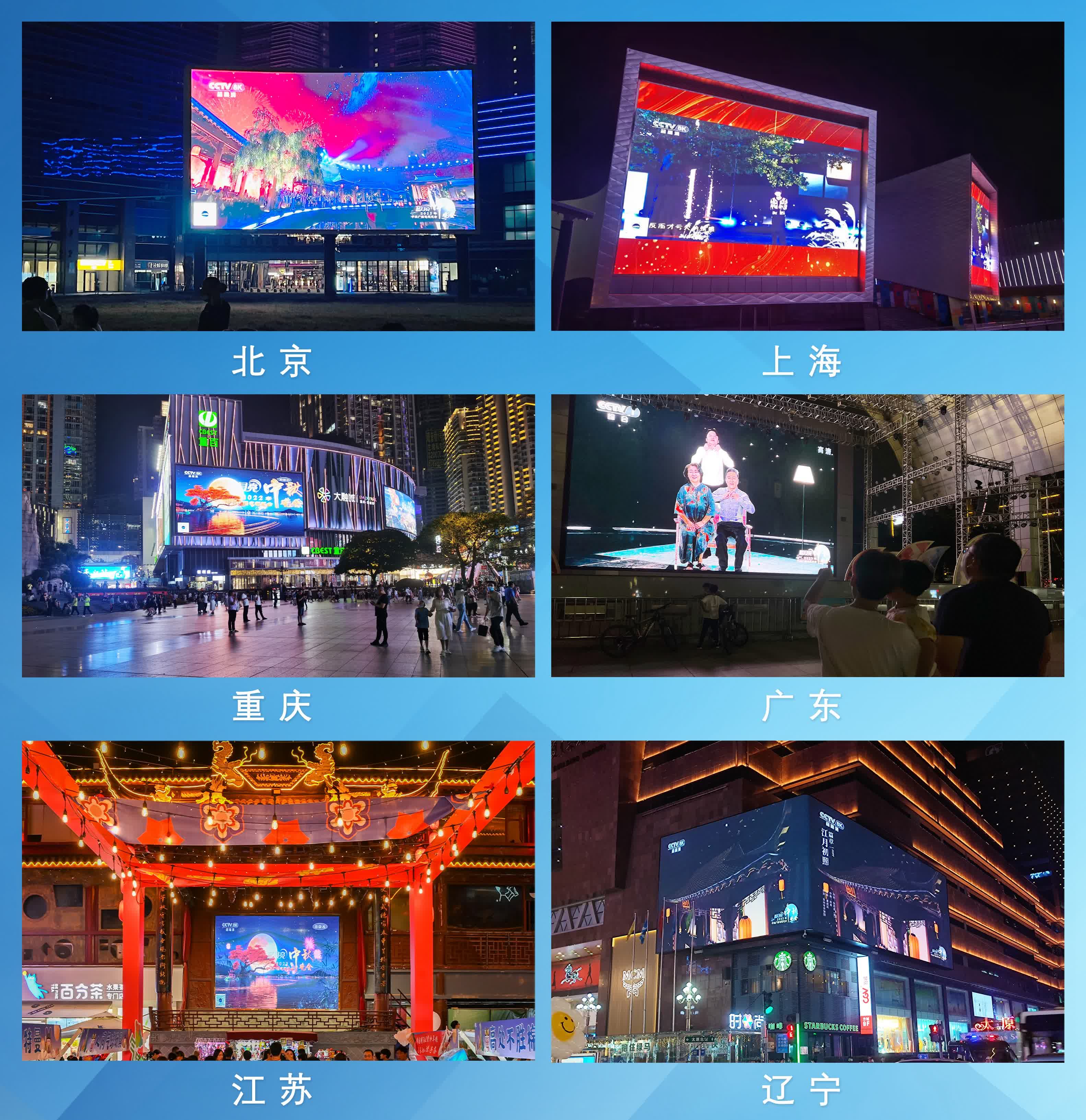 今年央視秋晚還首次採用8K超高清技術和三維菁彩聲技術製作播出,並首次通過「百城千屏」超高清公共大屏傳播體系播出。中秋夜,不少觀眾在全國70個城市的270餘塊戶外地標大屏上看同步觀看8K秋晚畫面,並通過「雲聽」客戶端收聽到與視頻同步的三維菁彩聲晚會電視伴音,大呼「很有意思,視聽效果震撼」「在戶外看秋晚感受獨特」。