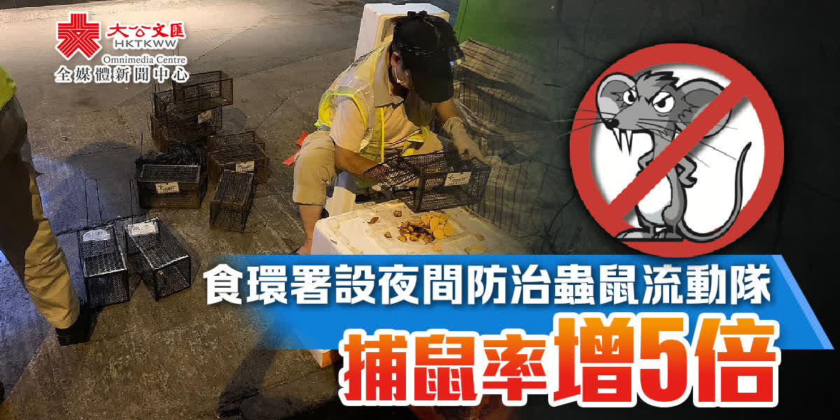 署方表示,自7月起,食環署在每區成立一隊夜間防治蟲鼠流動隊,希望可以更具針對性在深夜時段捕鼠,加強捕鼠效能。流動隊在晚上約11點至凌晨2點出動,於露天排檔及戶外濕街市後巷附近等區內鼠患嚴重地點放置捕鼠器,並於清晨5至6時收回,以減少對附近商販的影響。食環署會不時轉換用作鼠餌的食物,增加捕鼠成功率,在上周五(9日)晚上的行動中,成功捕捉到5隻老鼠。