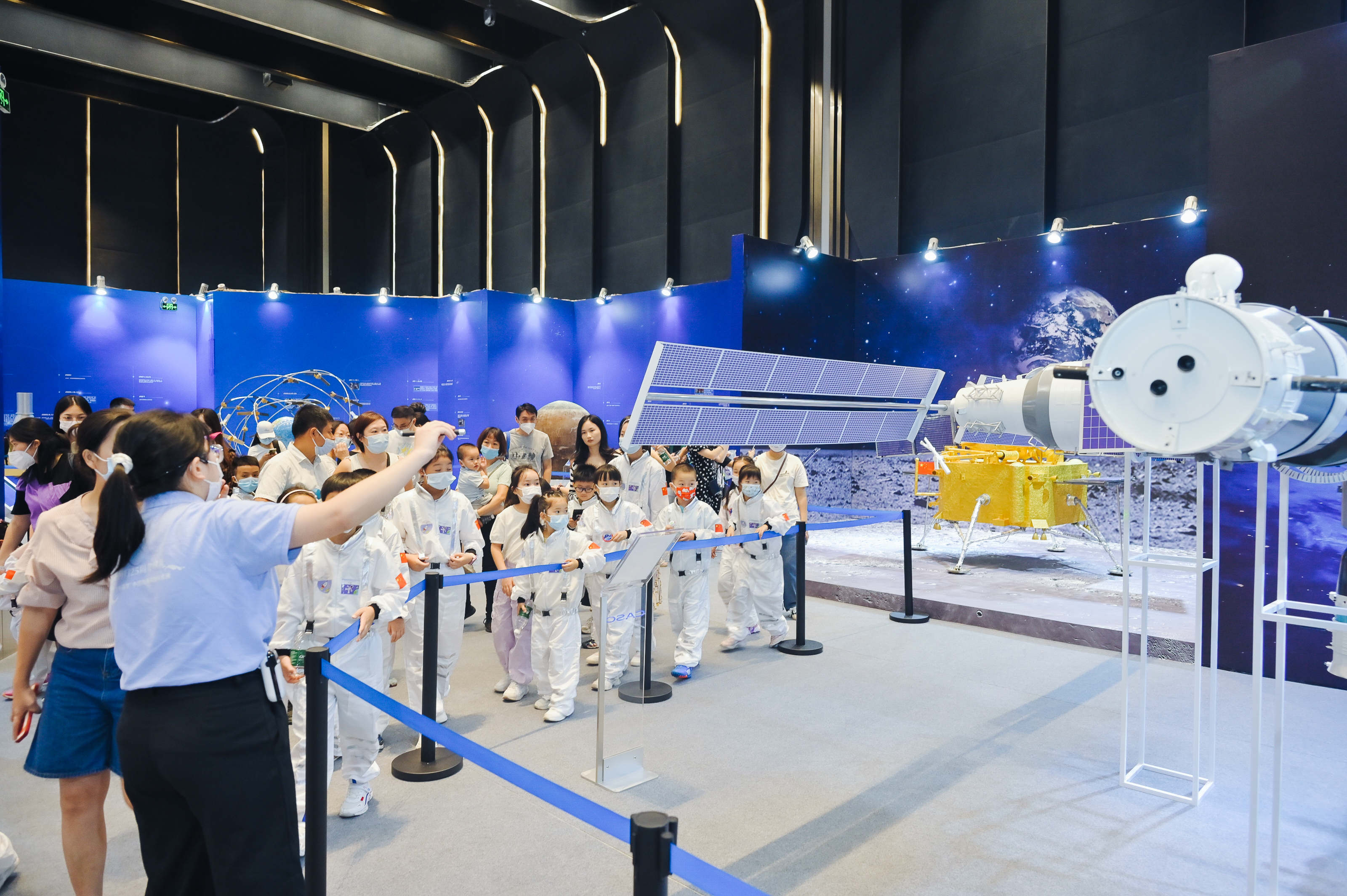展館設有航天發展史展區、航天成果展區、航天互動體驗區等,眾多航天器模型、實物、互動體驗設備一一呈現,涵蓋了從萬戶飛天的人類航天發展史到航天員拍攝到的太空影像、從「長征系列」運載火箭到「東方紅」一號衛星、從火箭殘骸實物到返回式衛星等;還有高分衛星、嫦娥5號月球探測器、天問一號火星探測器、中國空間站模型等,展現中國航天近年來取得的偉大成就。