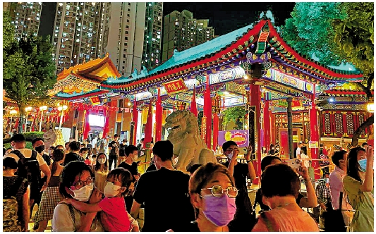 今年中秋綵燈特別璀璨,全港各區都有綵燈會,人潮如鯽。在黃大仙祠的中秋花燈園遊會,更加是人山人海,嗇色園昨晚在社交網頁宣布,由於人流眾多,為保障公眾安全,昨晚要提早於晚上九時在黃大仙祠正門外「截龍」,較原定時間提早一小時。