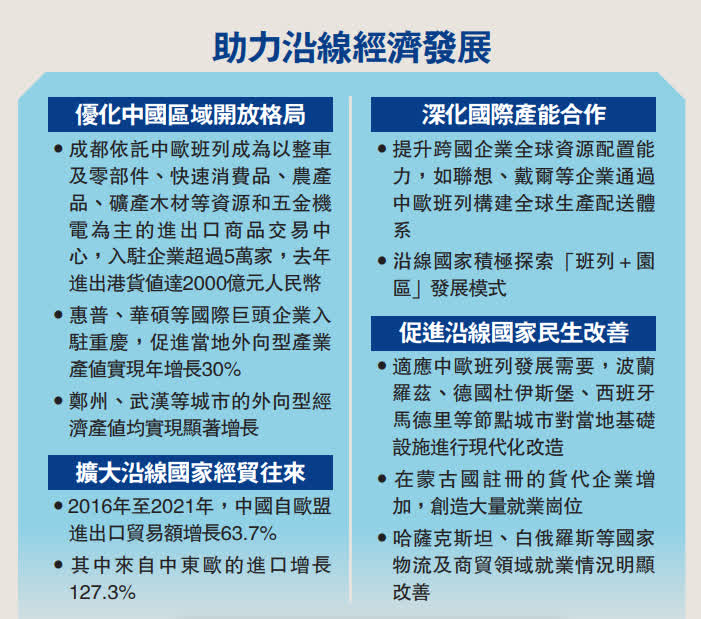 由推進「一帶一路」建設工作領導小組辦公室組織編寫的《中歐班列發展報告(2021)》(以下簡稱《報告》)日前正式發布,指出新冠疫情後,中歐班列為助力中歐共同抗疫發揮了重要作用。西安、重慶、成都、鄭州、義烏、蘇州、瀋陽、武漢、青島、廈門、連雲港等地開行中歐班列「防疫物資專列」。